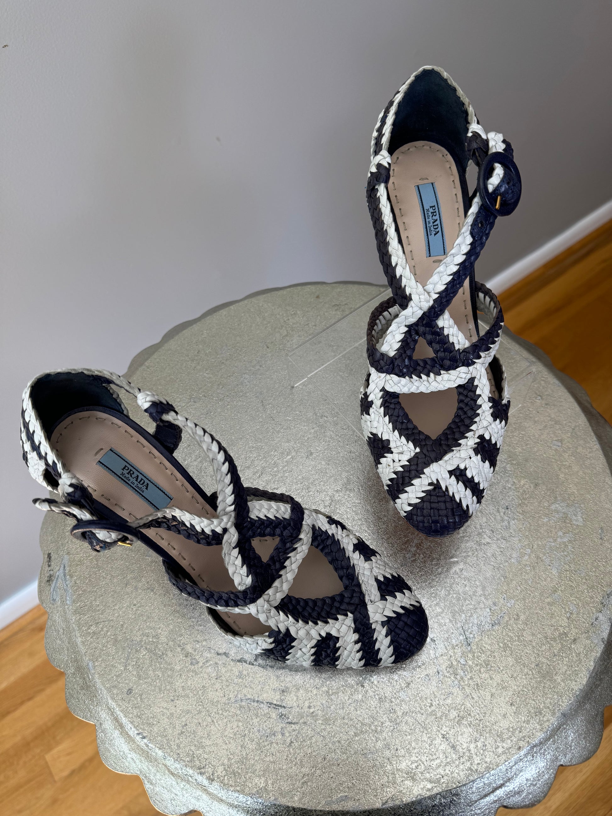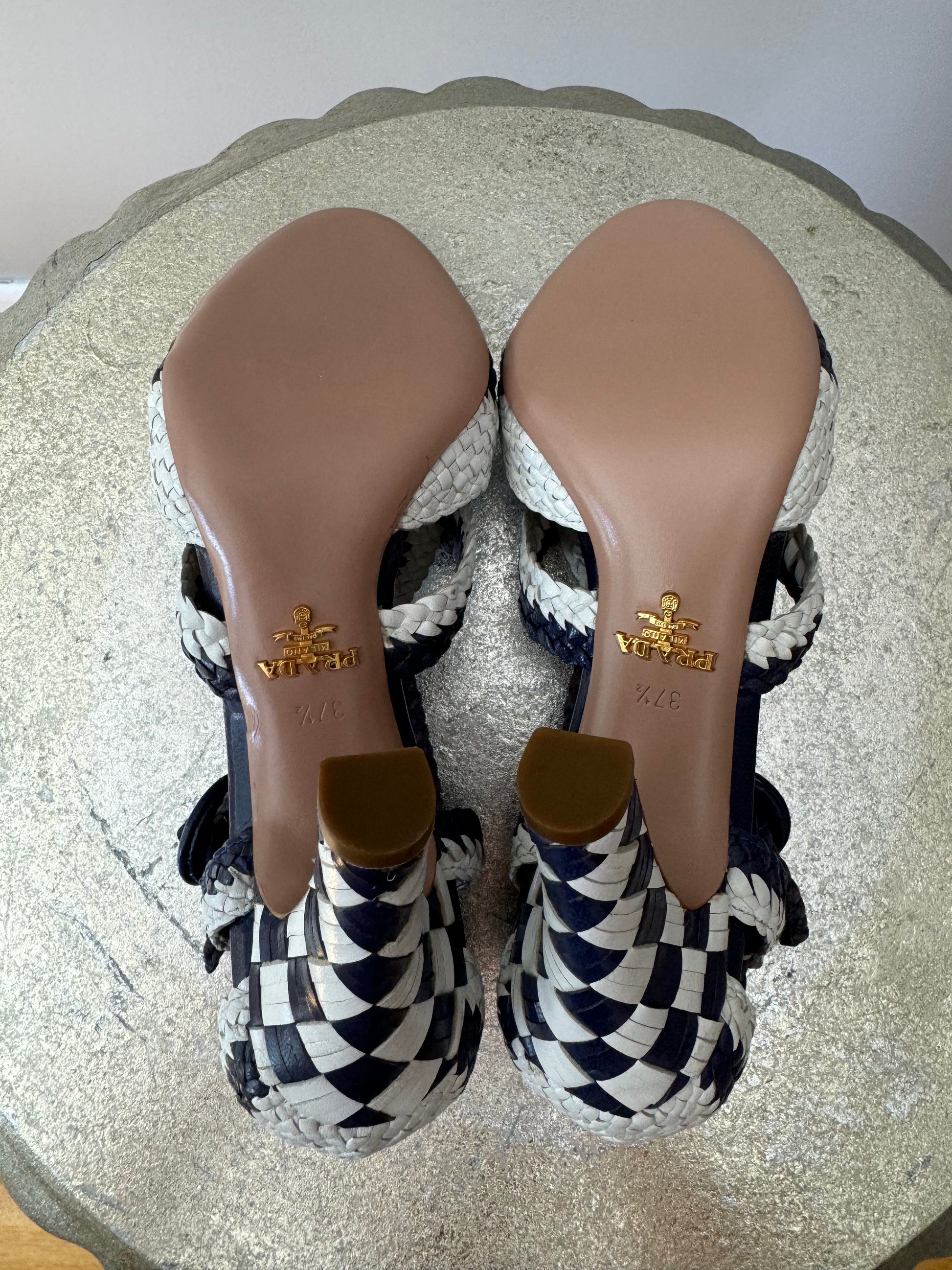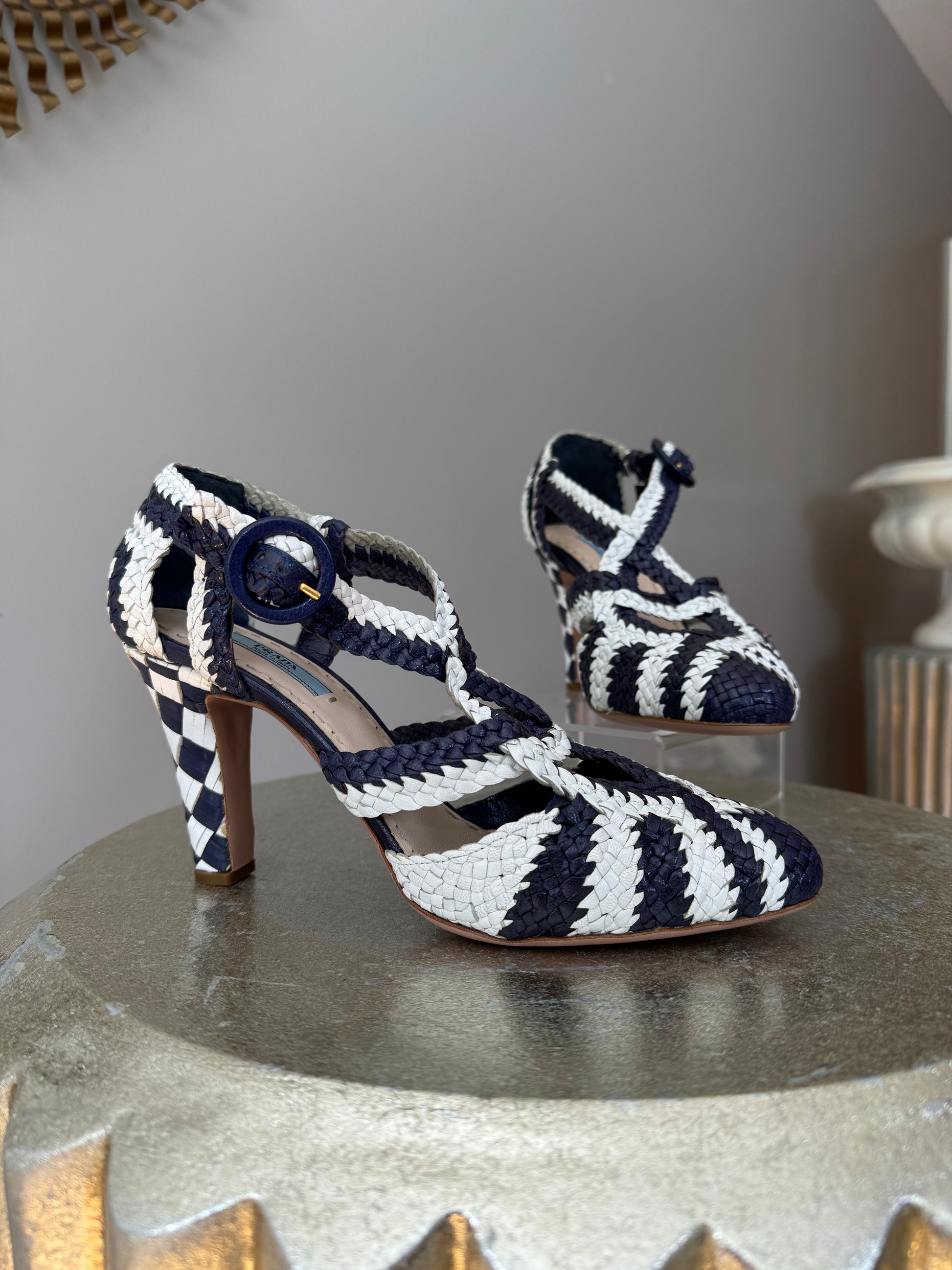 PRADA - White & Blue Spring 2011 Woven Pumps