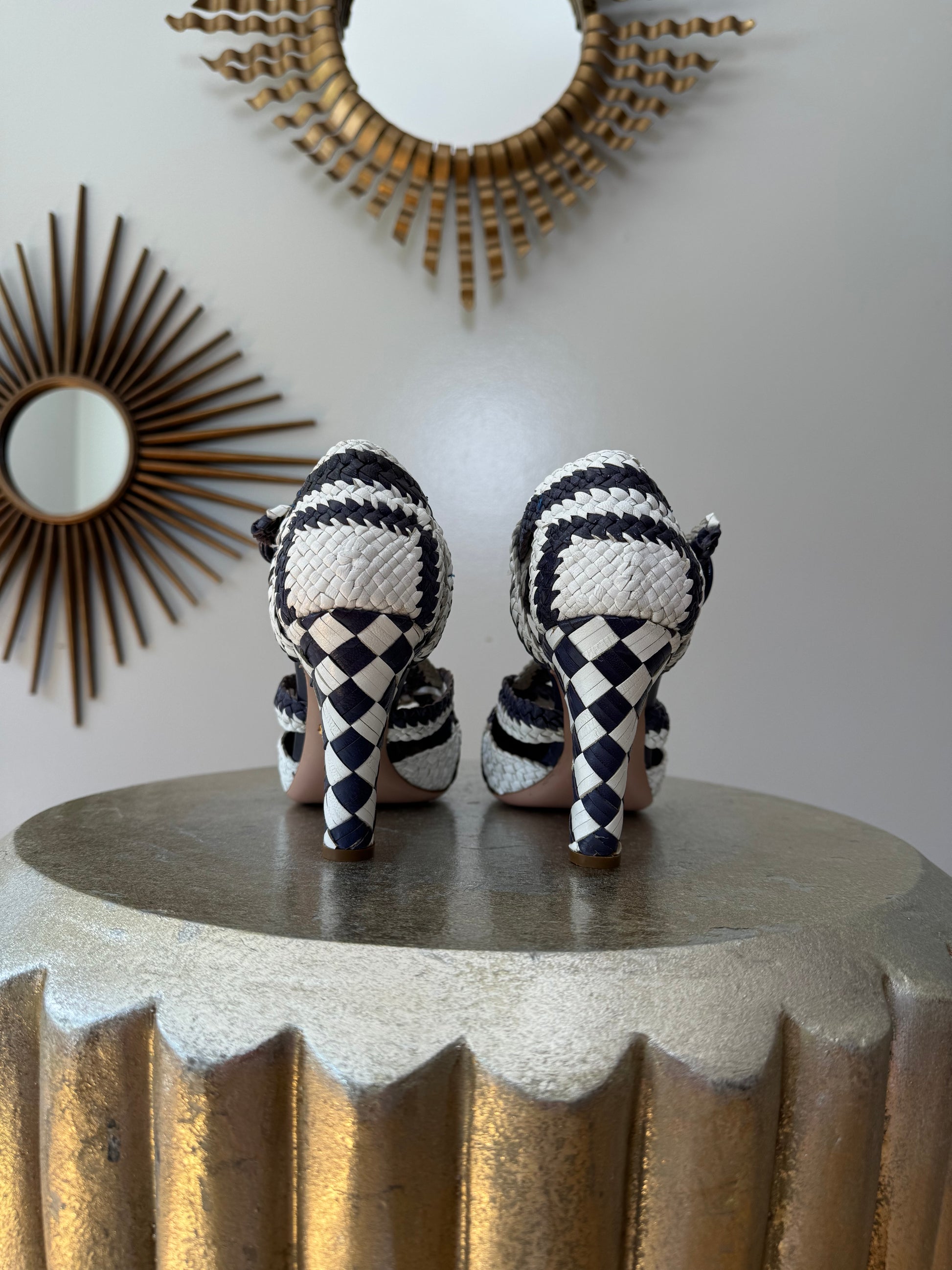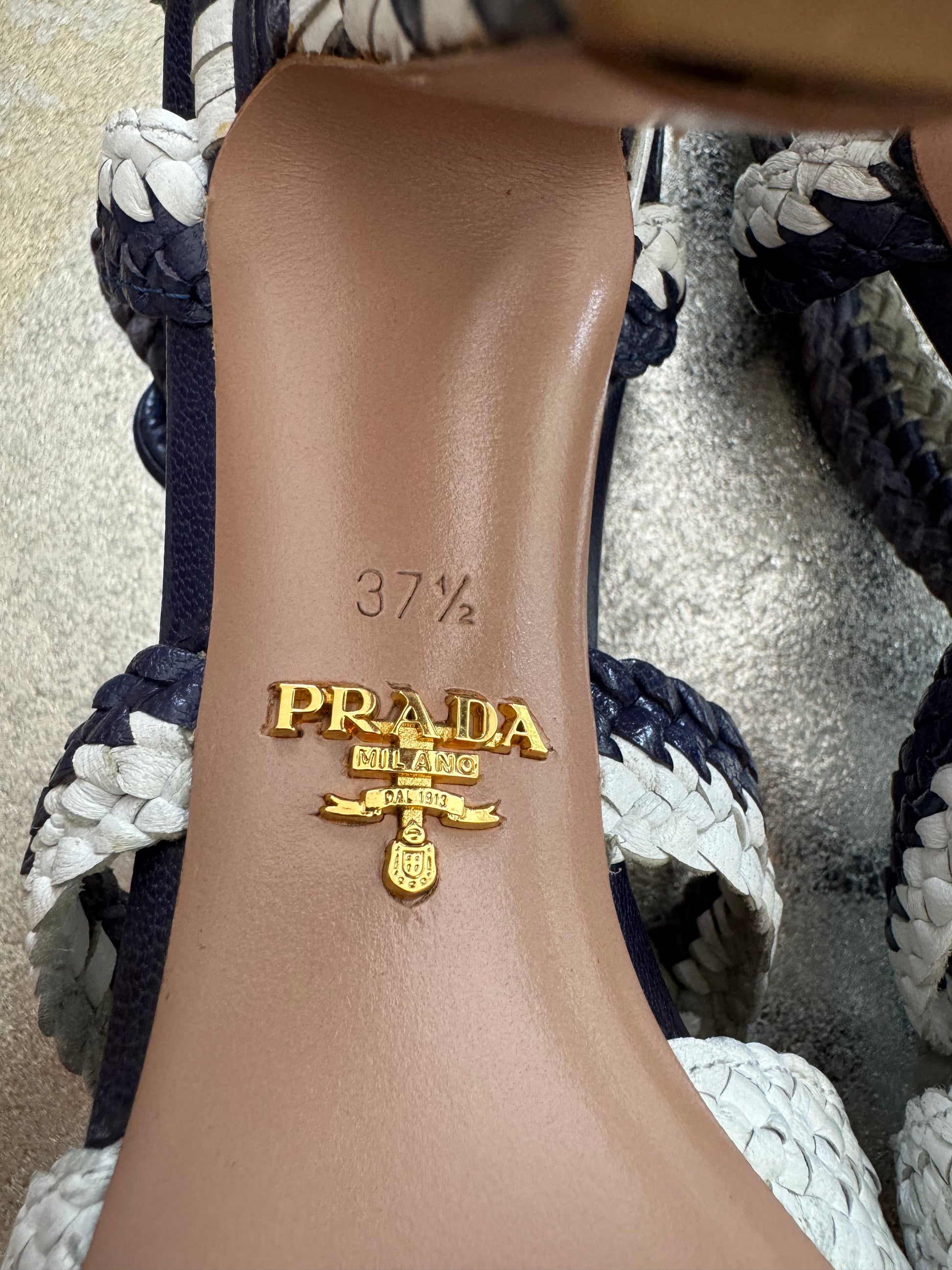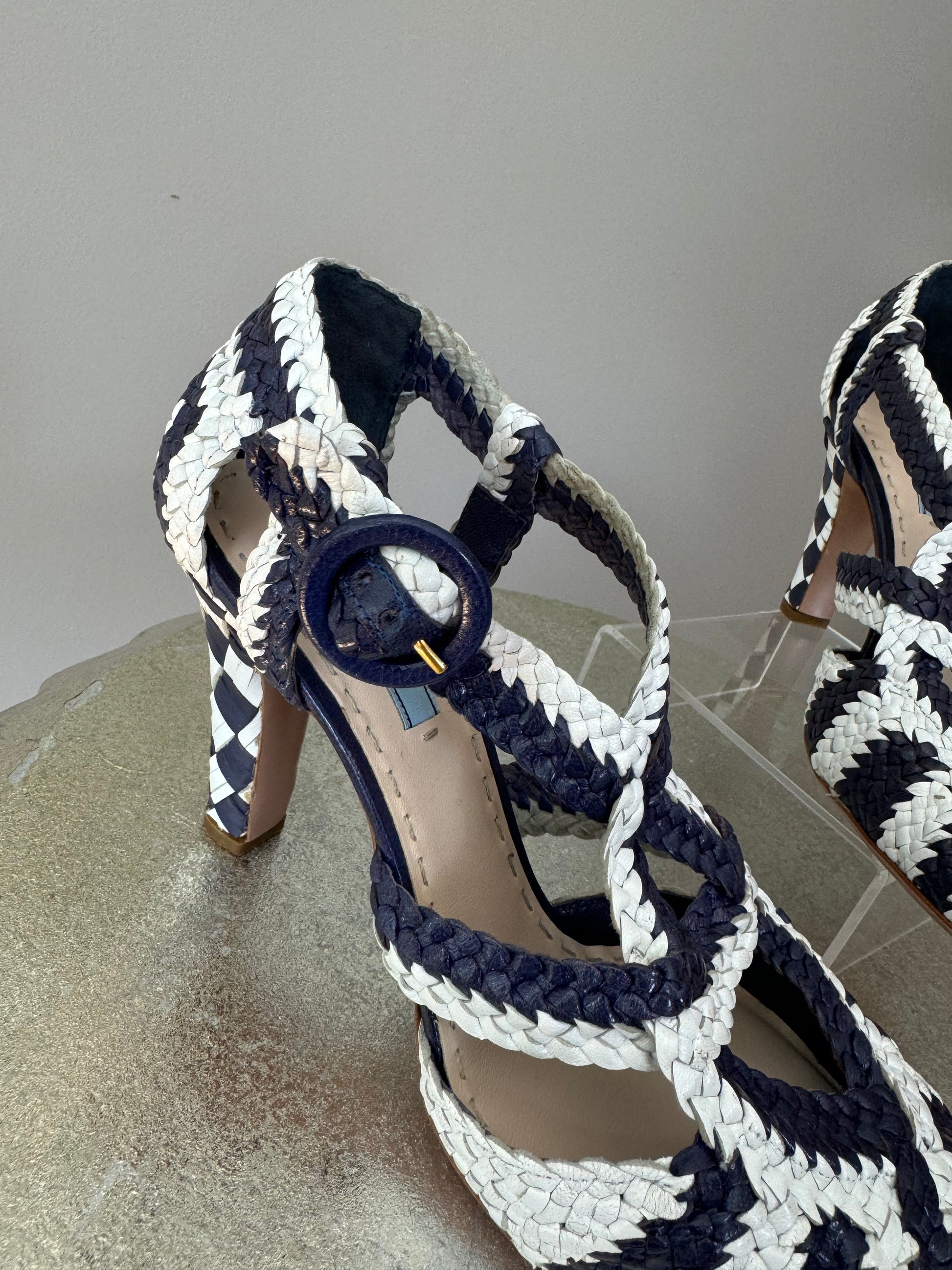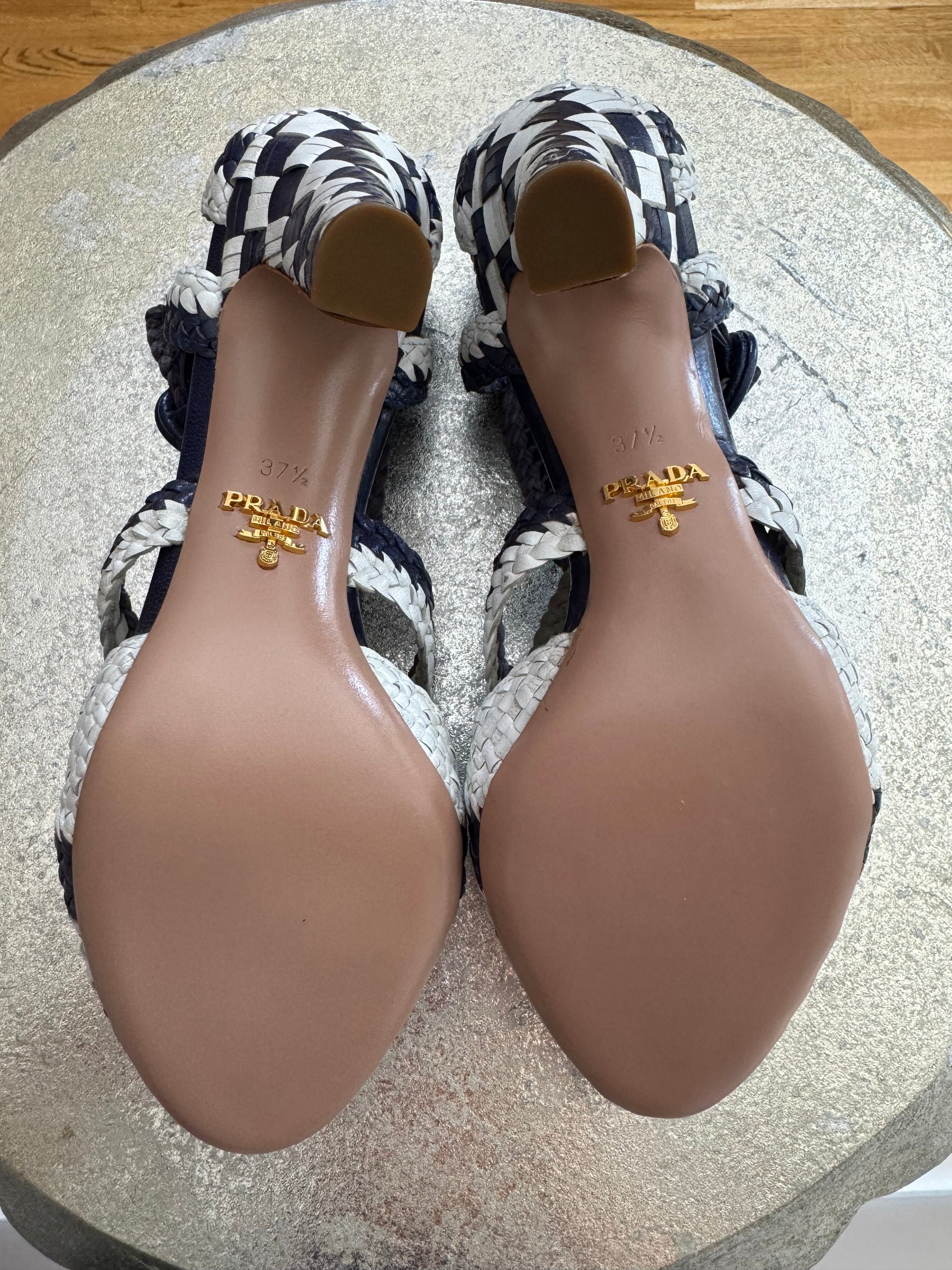 PRADA - White & Blue Spring 2011 Woven Pumps