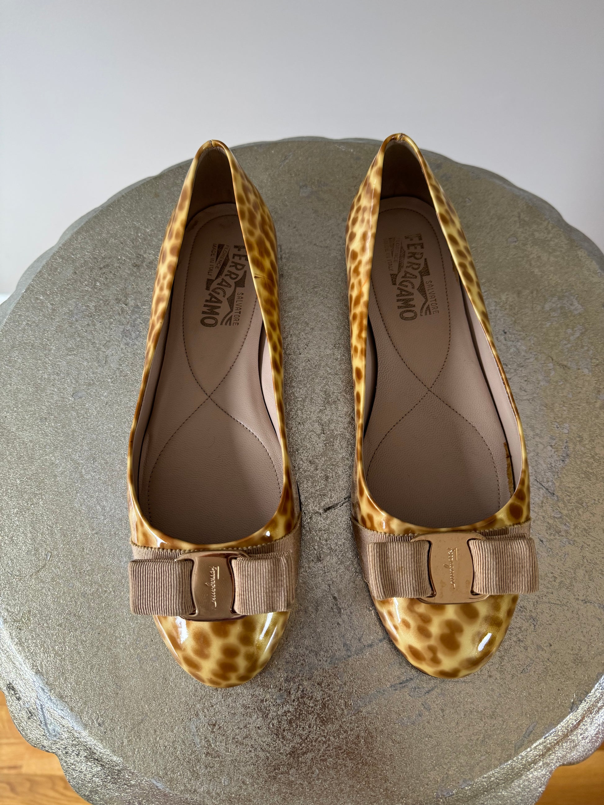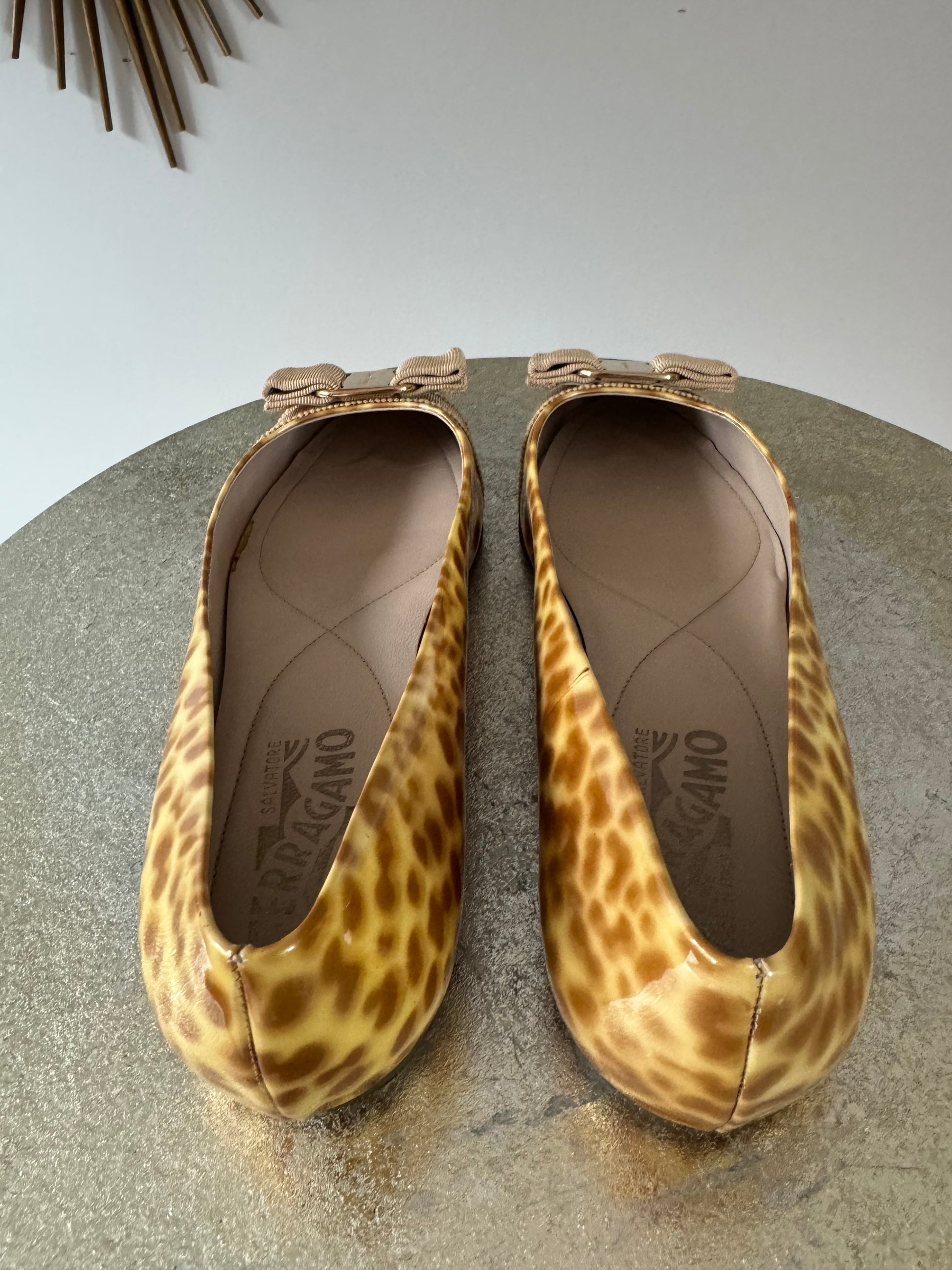 Salvatore Ferragamo - Patent Leather Animal Print Varina Ballet Flats