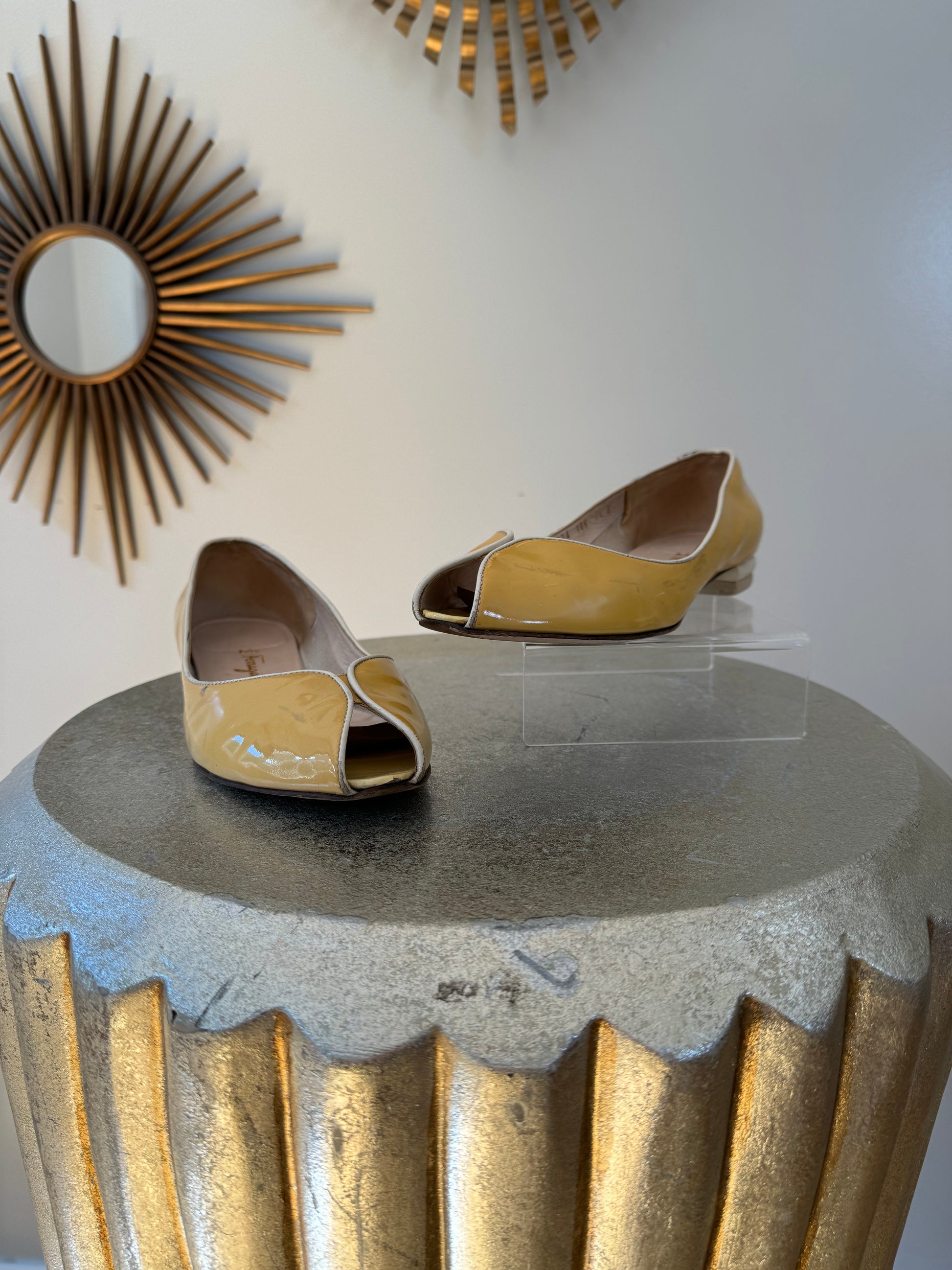 Salvatore Ferragamo - Patent Leather Peep Toe Flats
