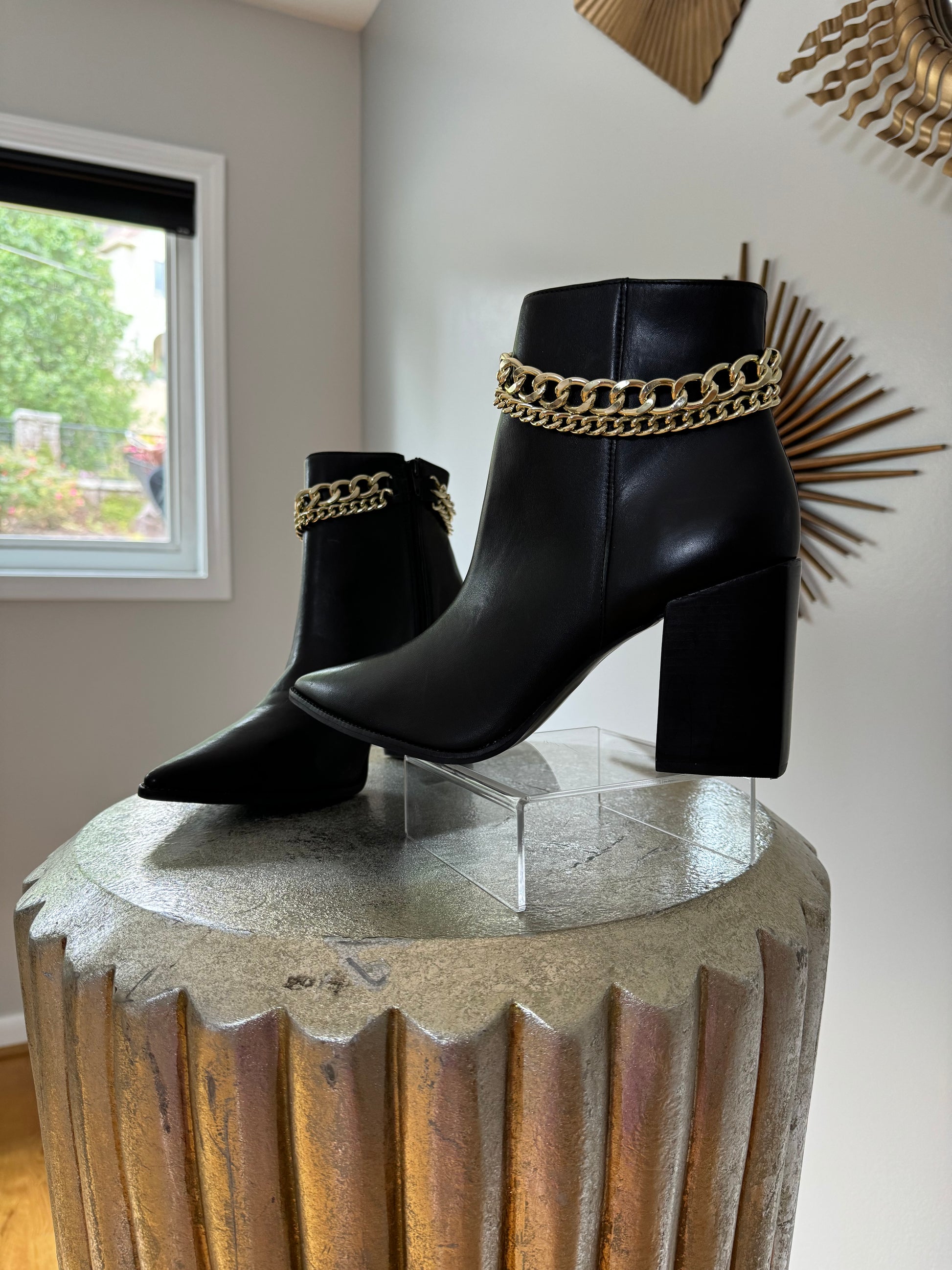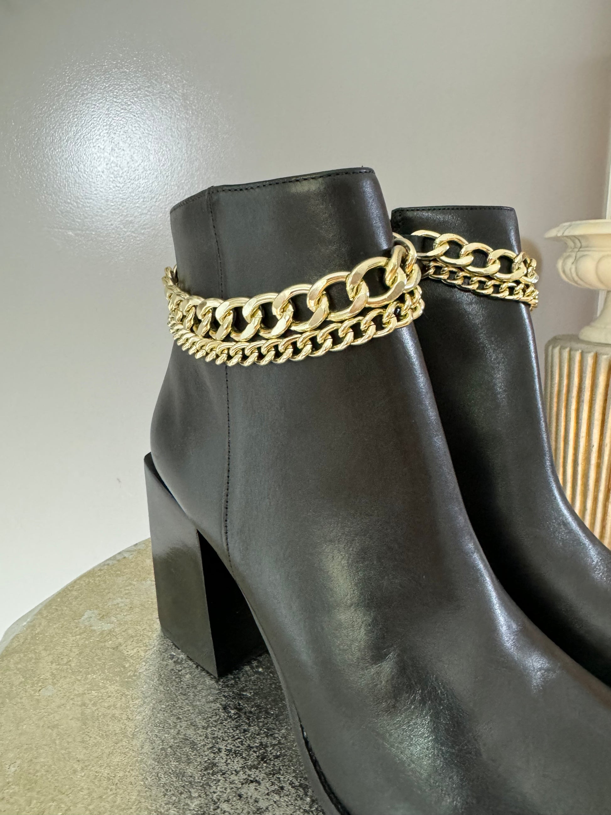Steve Madden - Perlina Black Leather Chain Ankle Boots