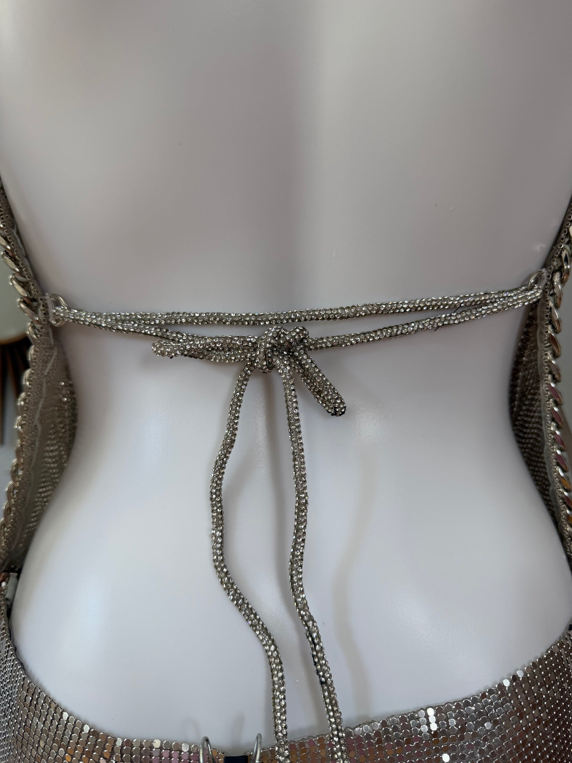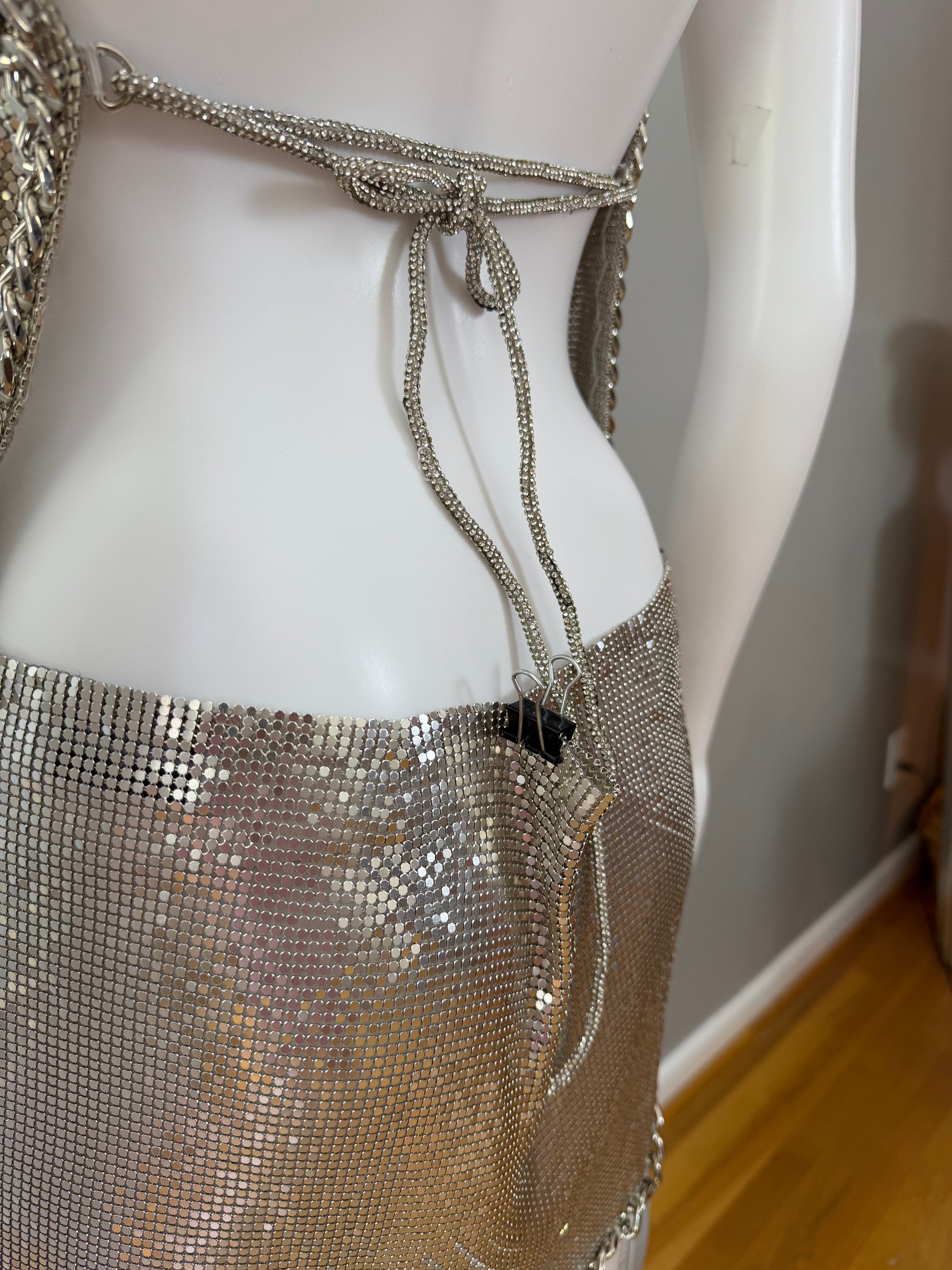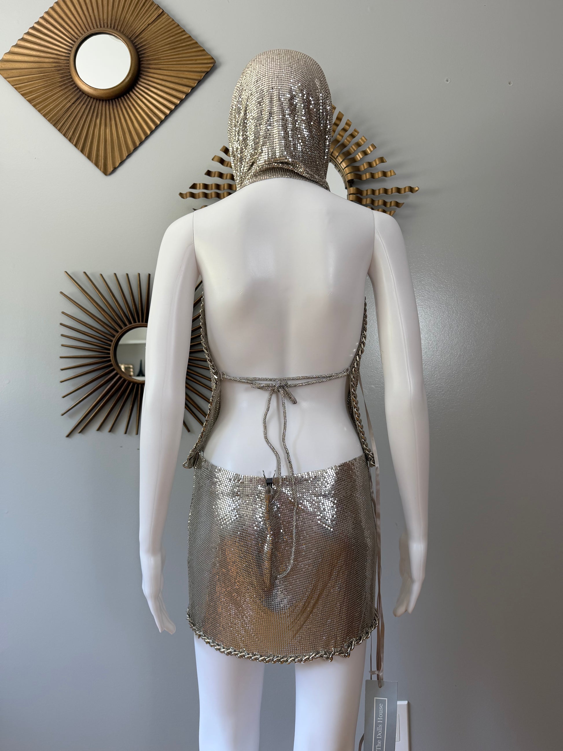 The Dolls House Silver Chainmail Set – Metallic Hooded Top & Mini Skirt Statement Outfit