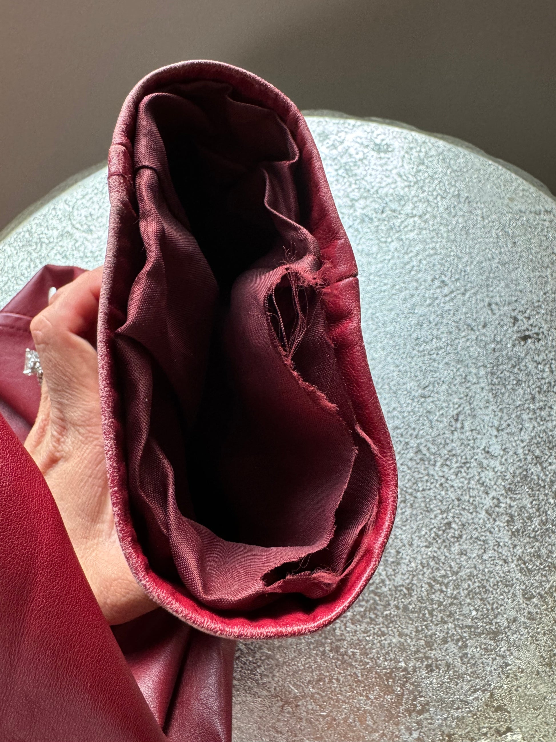 Very good pre-owned exterior condition, the interior has some imperfections. One of the pockets has a hole in the lining and doesn’t work. Also the lining of one of the sleeves has a hole, but it’s not noticeable while wearing.