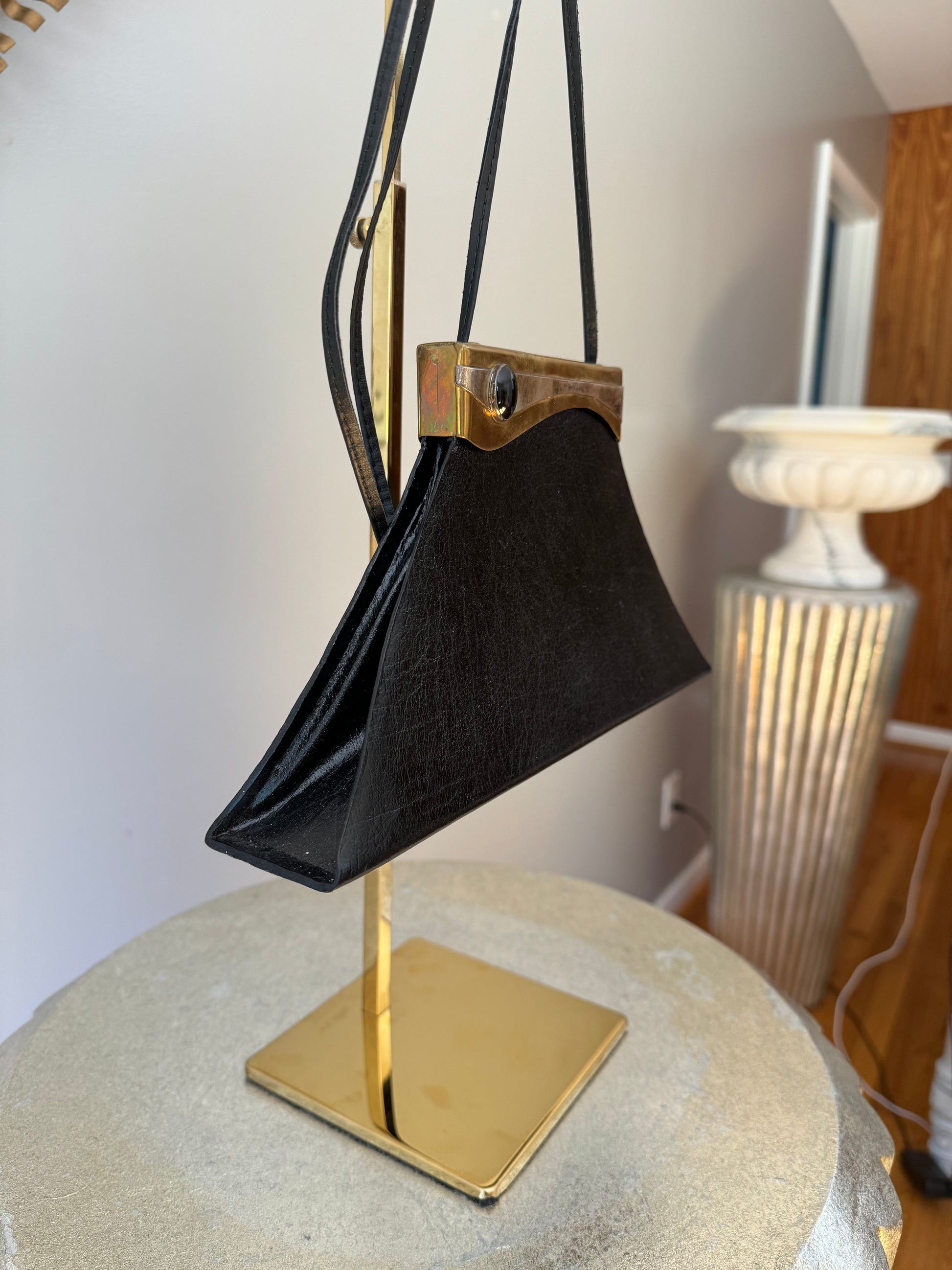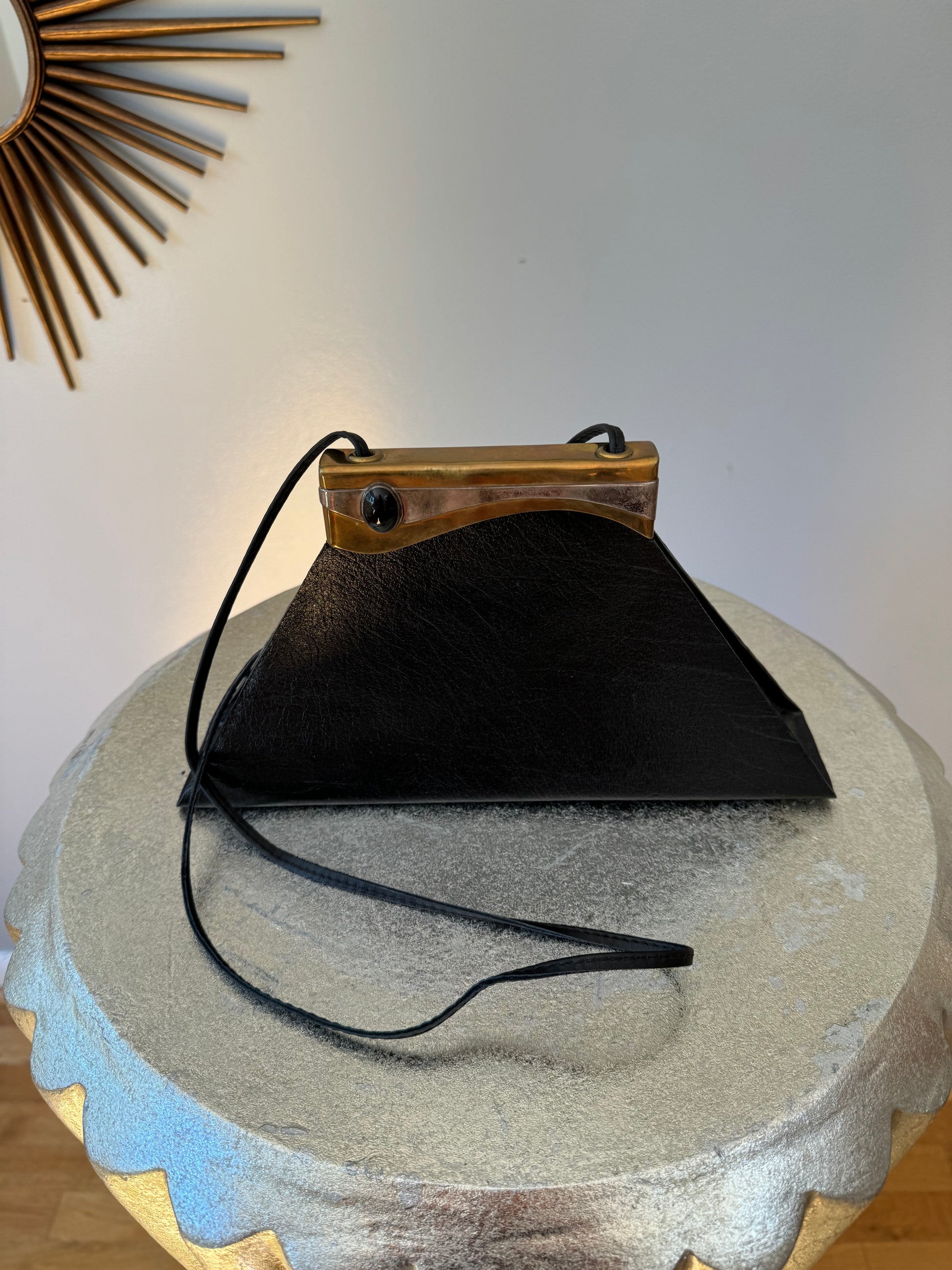 Vintage Black Triangular Leather Bag
