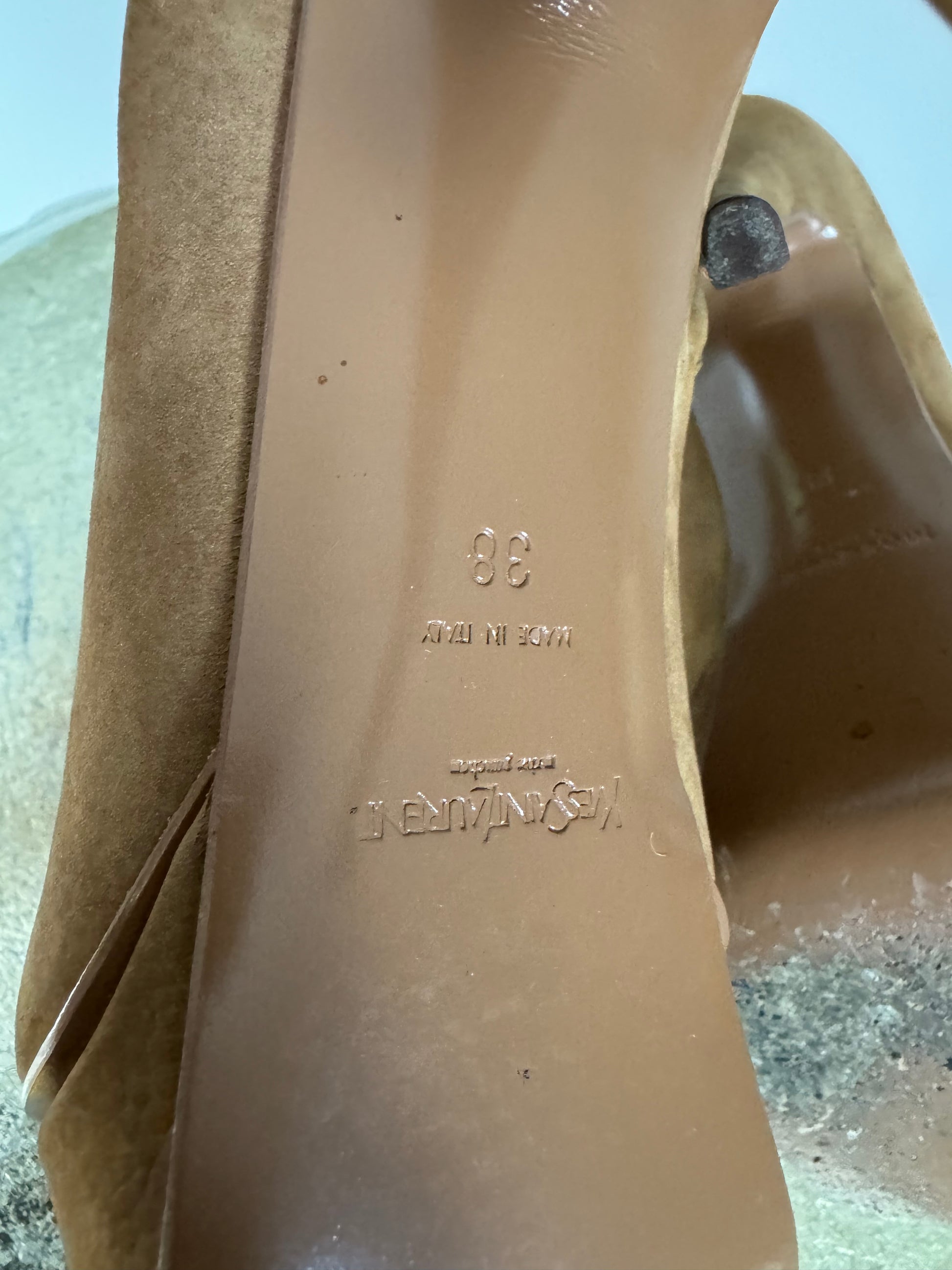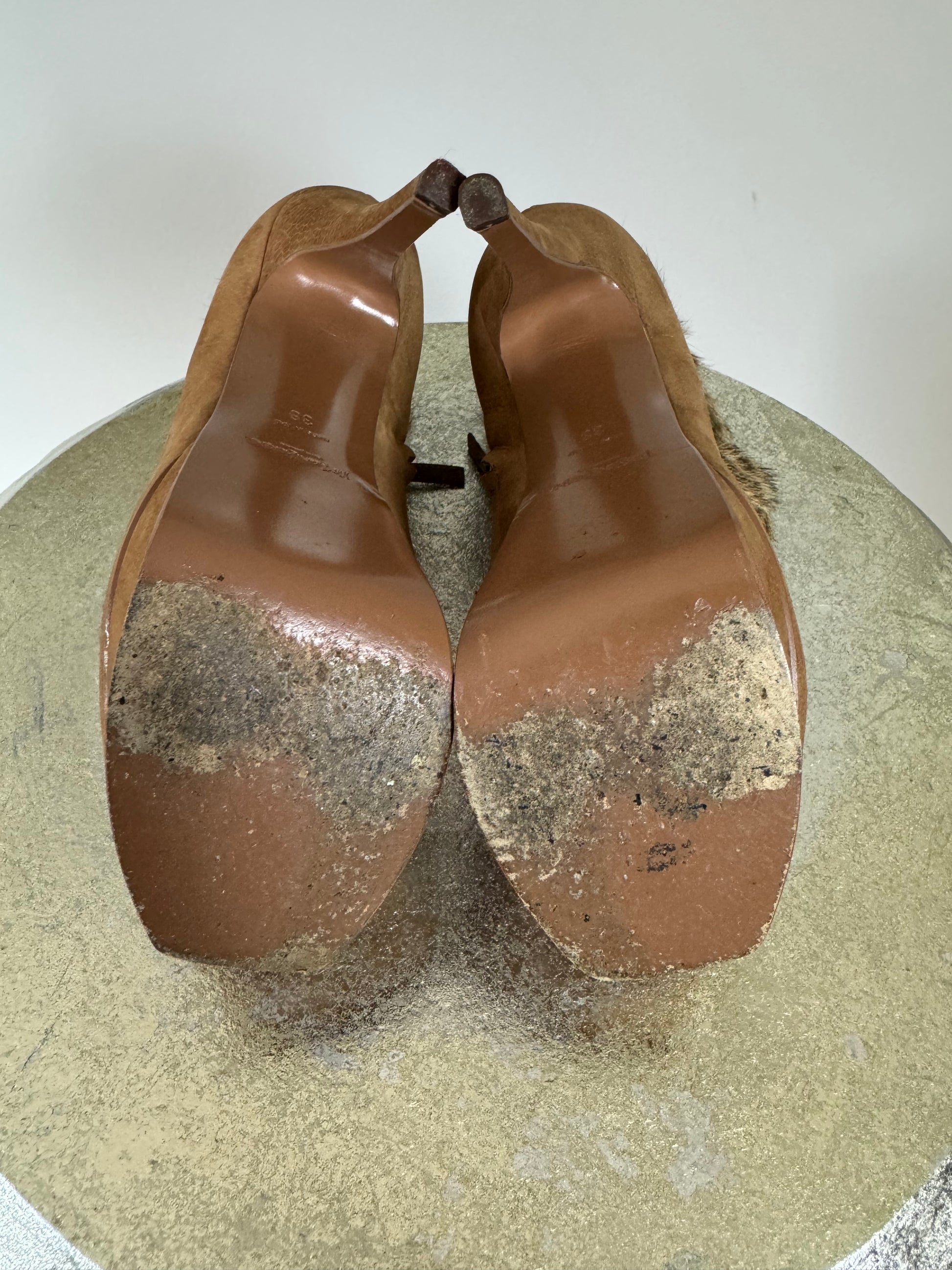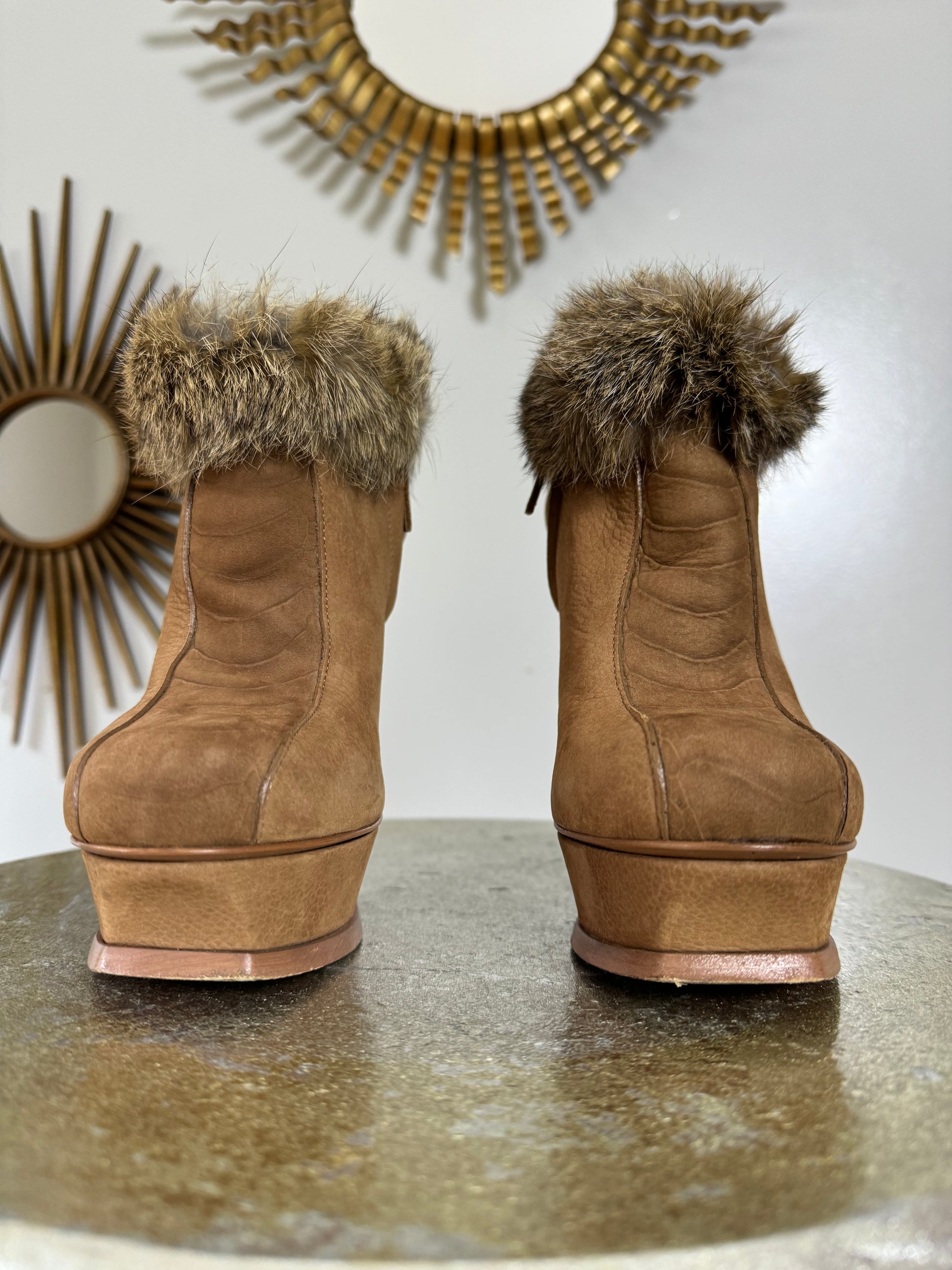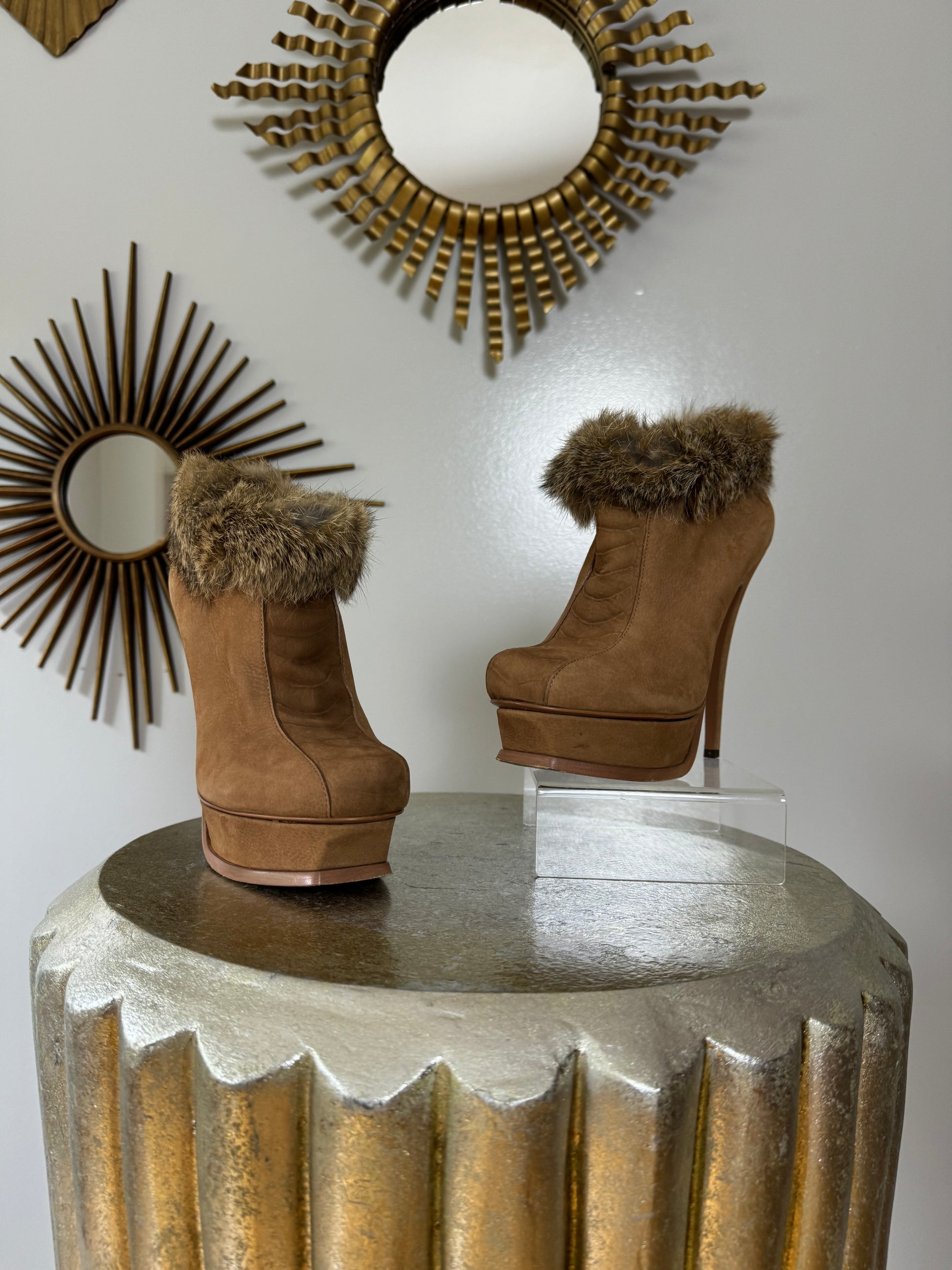 YSL - Tan Tribute Suede Booties With Fur Cuff