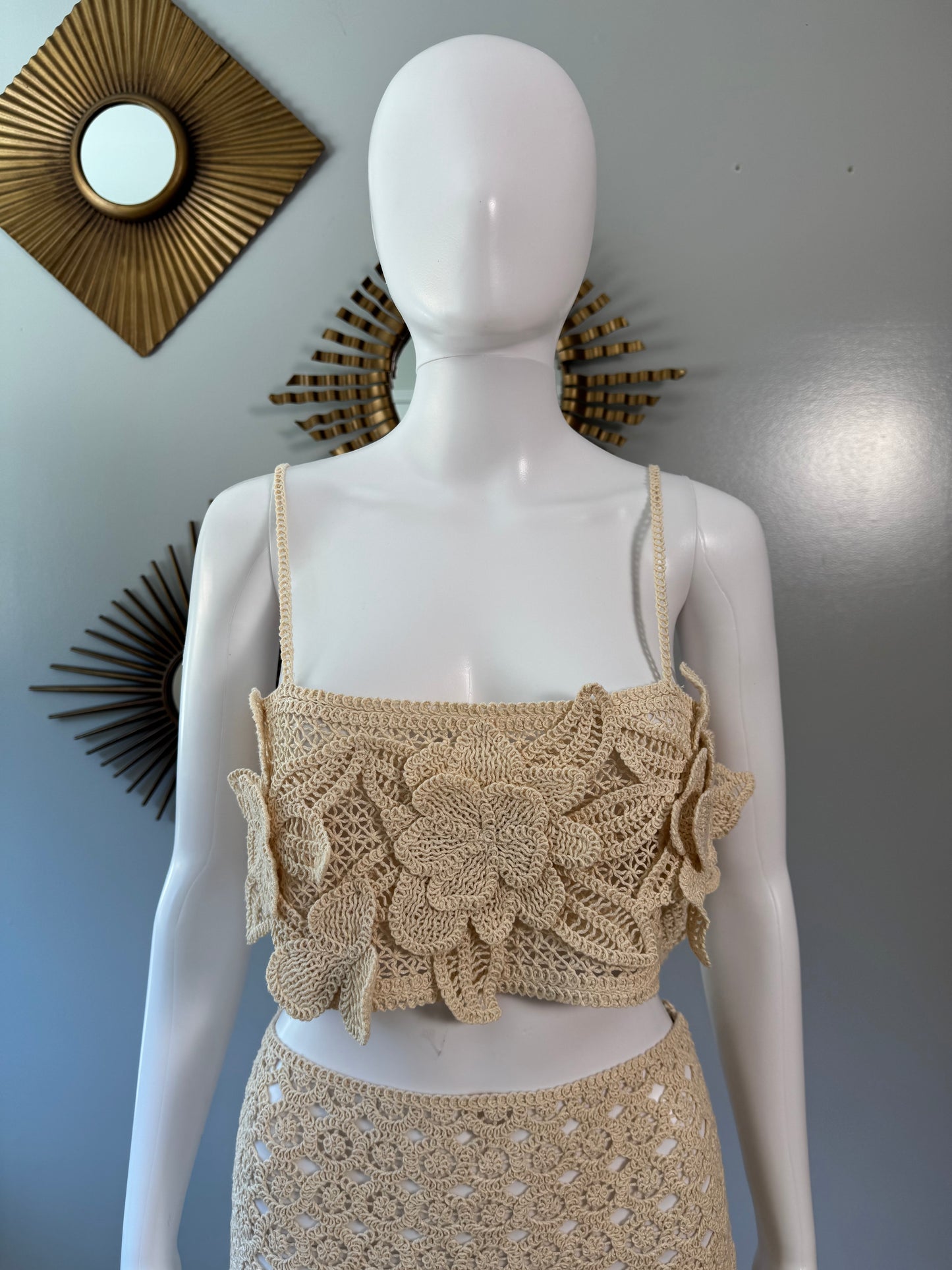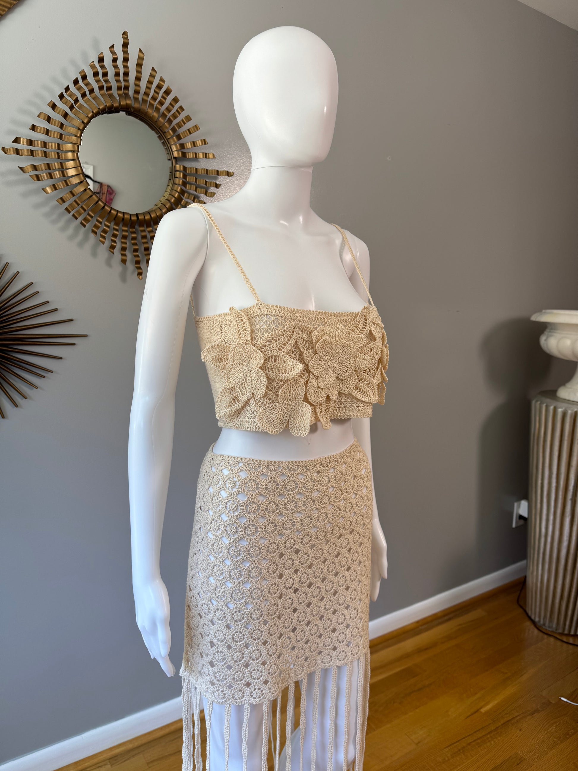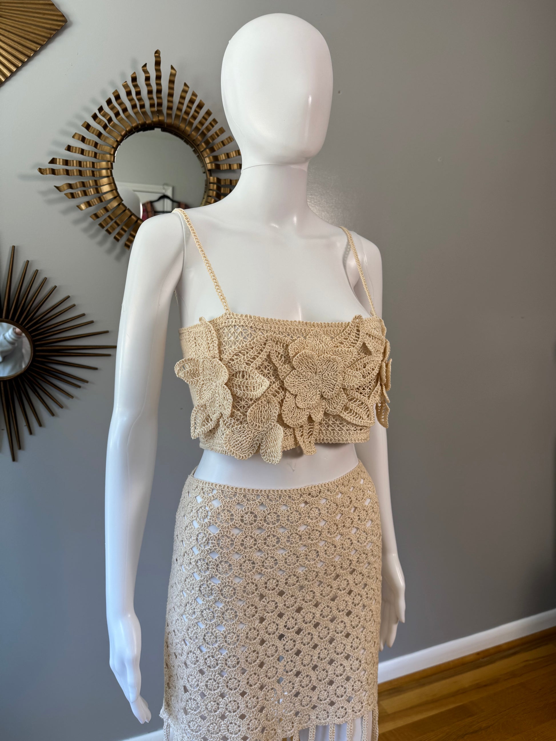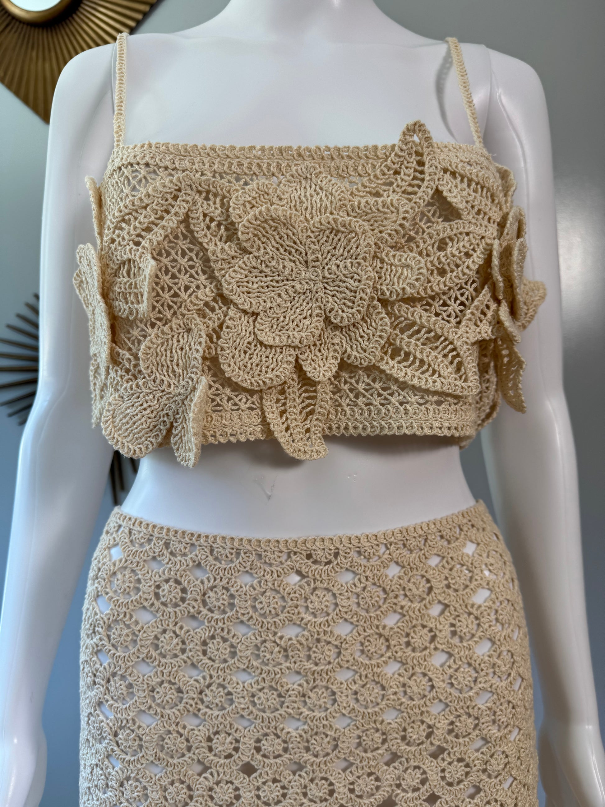 ZARA - Beige Flower Crochet Top & Skirt Set