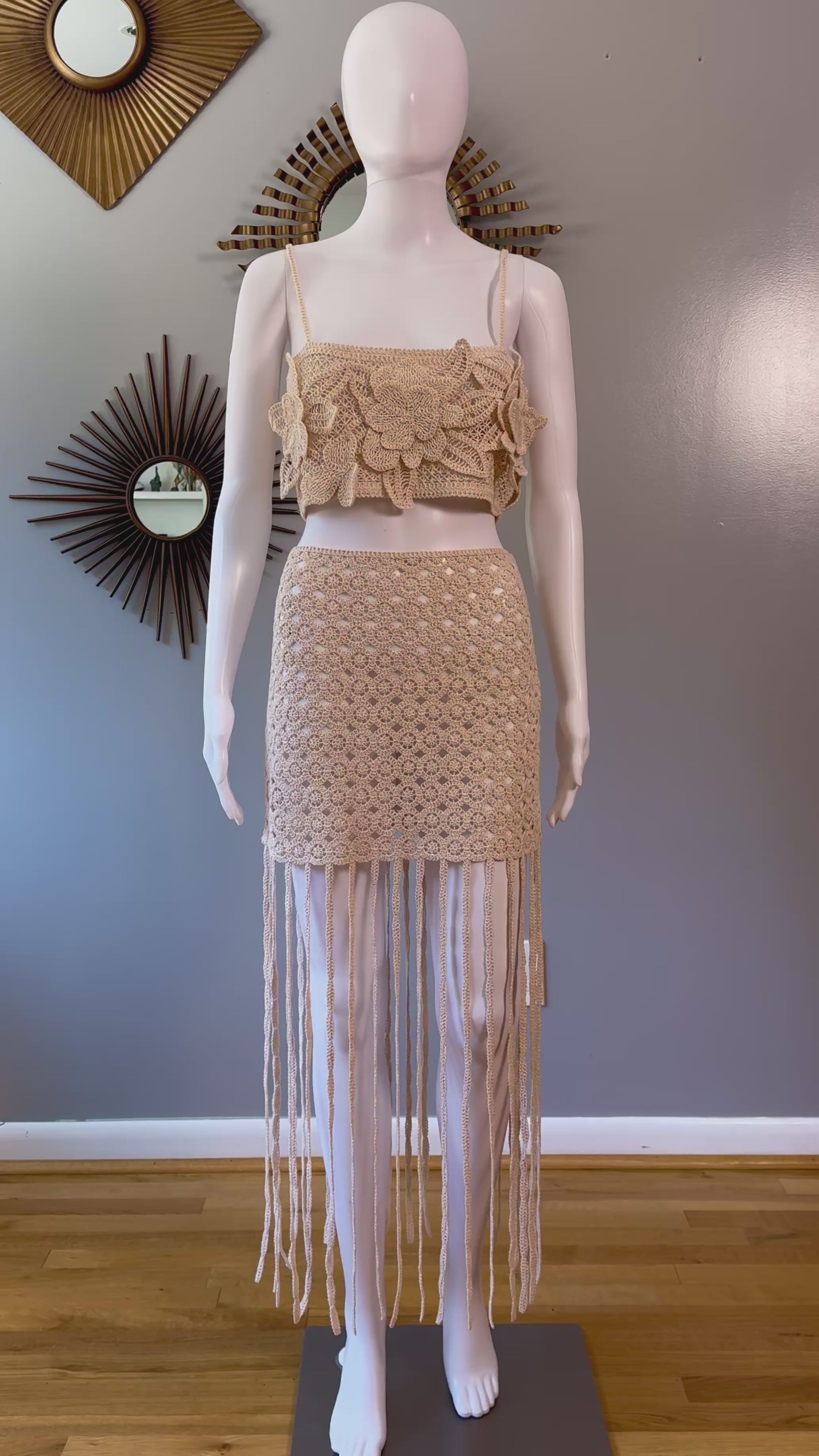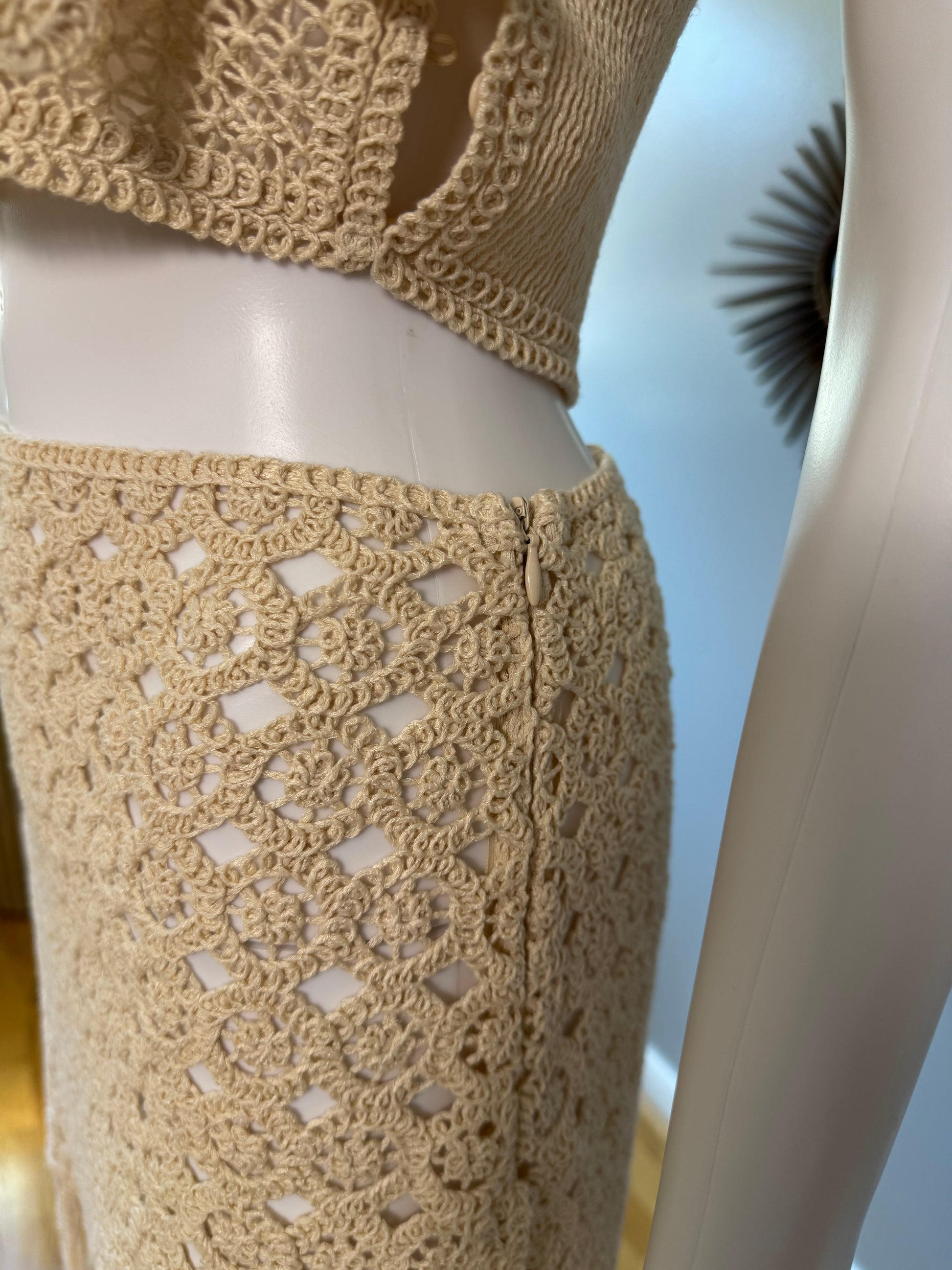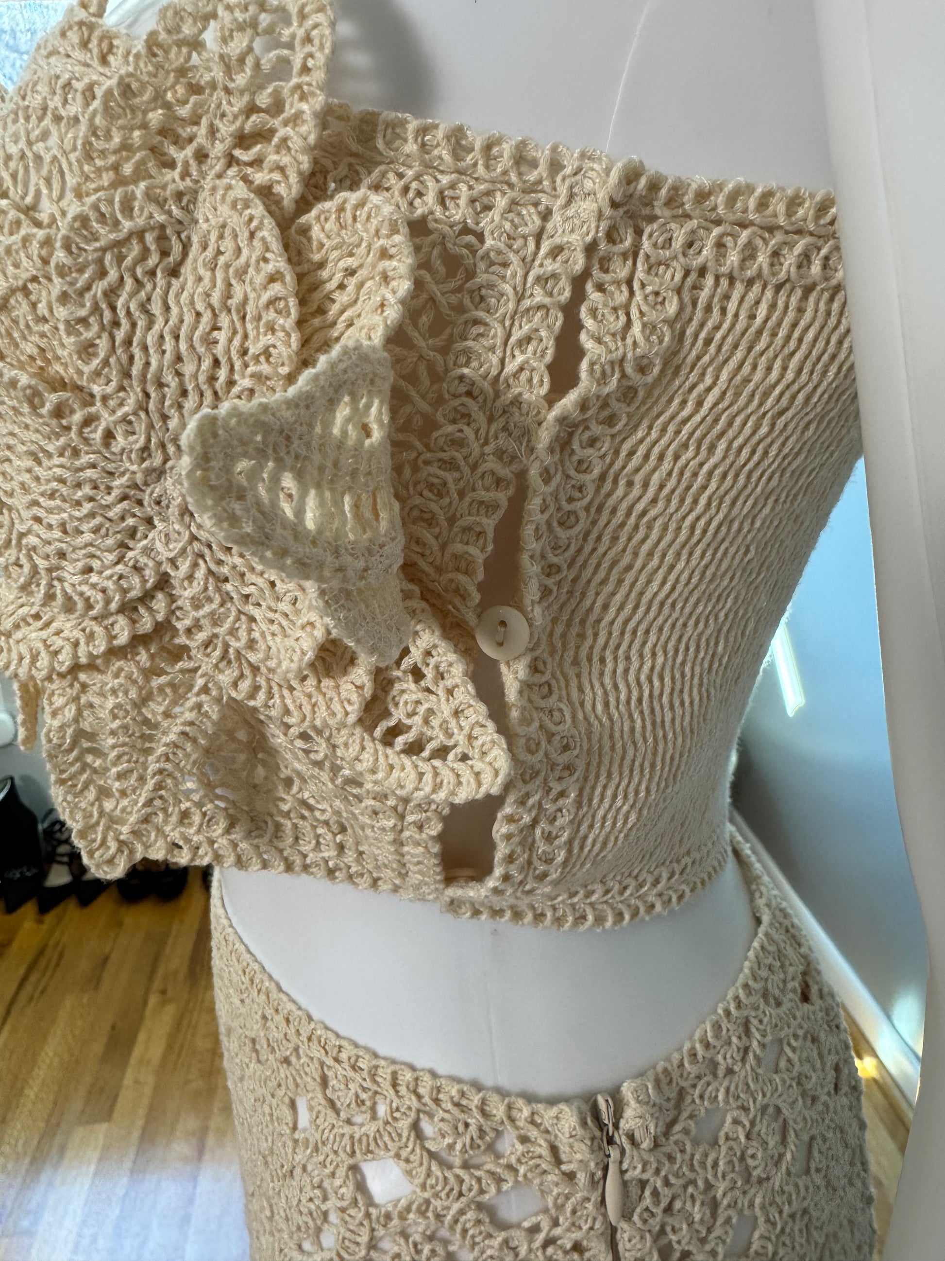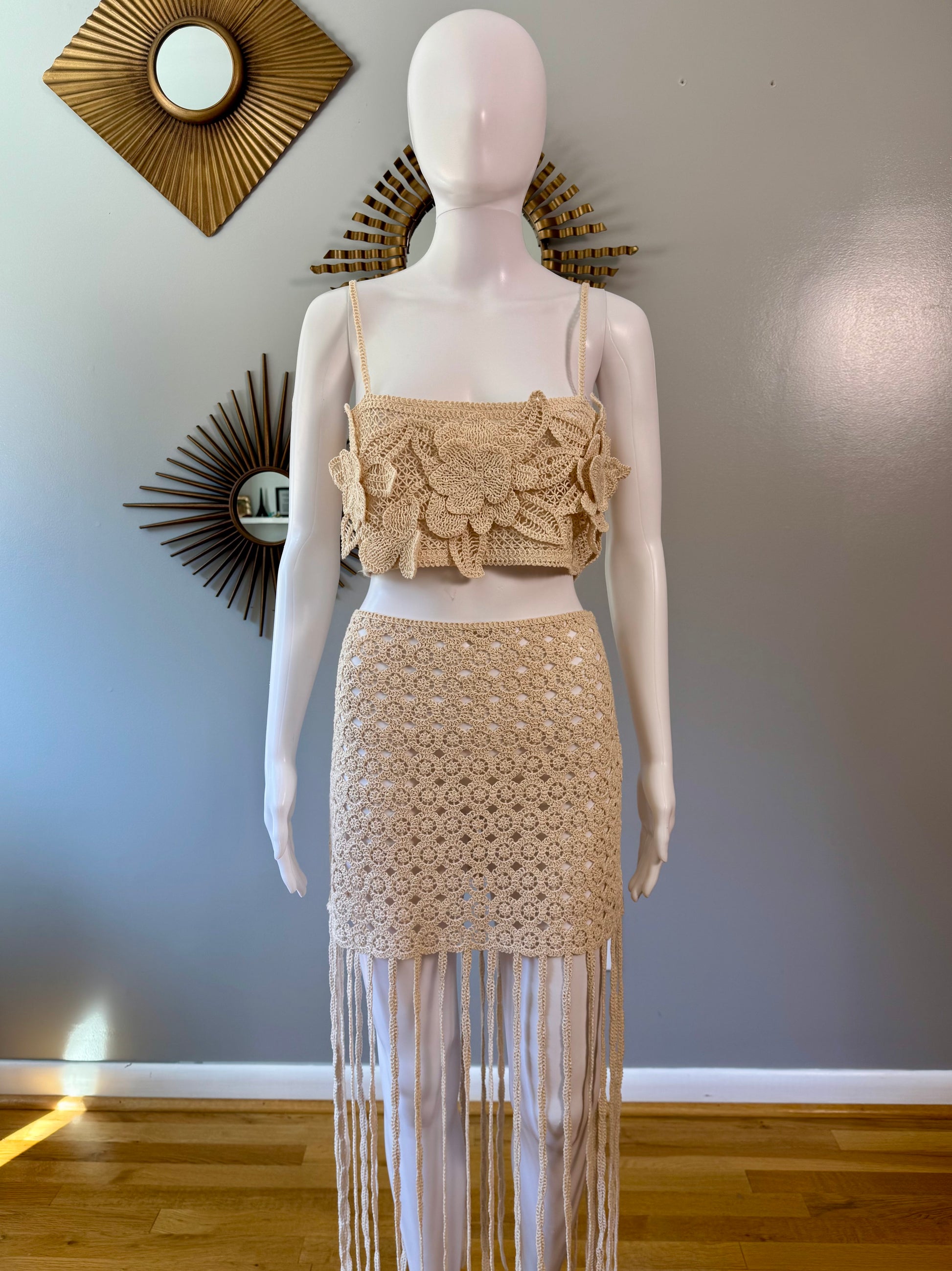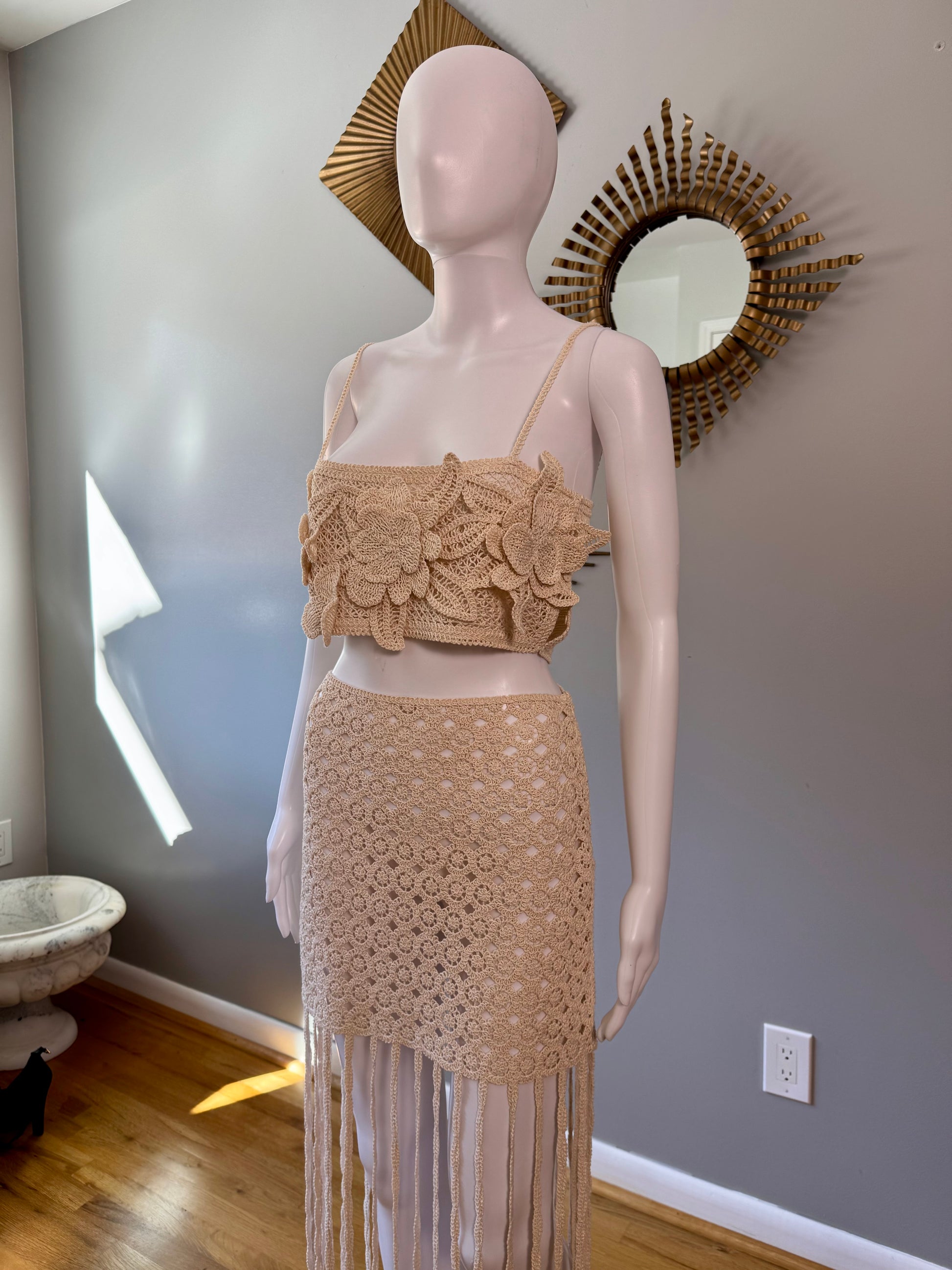 ZARA - Beige Flower Crochet Top & Skirt Set