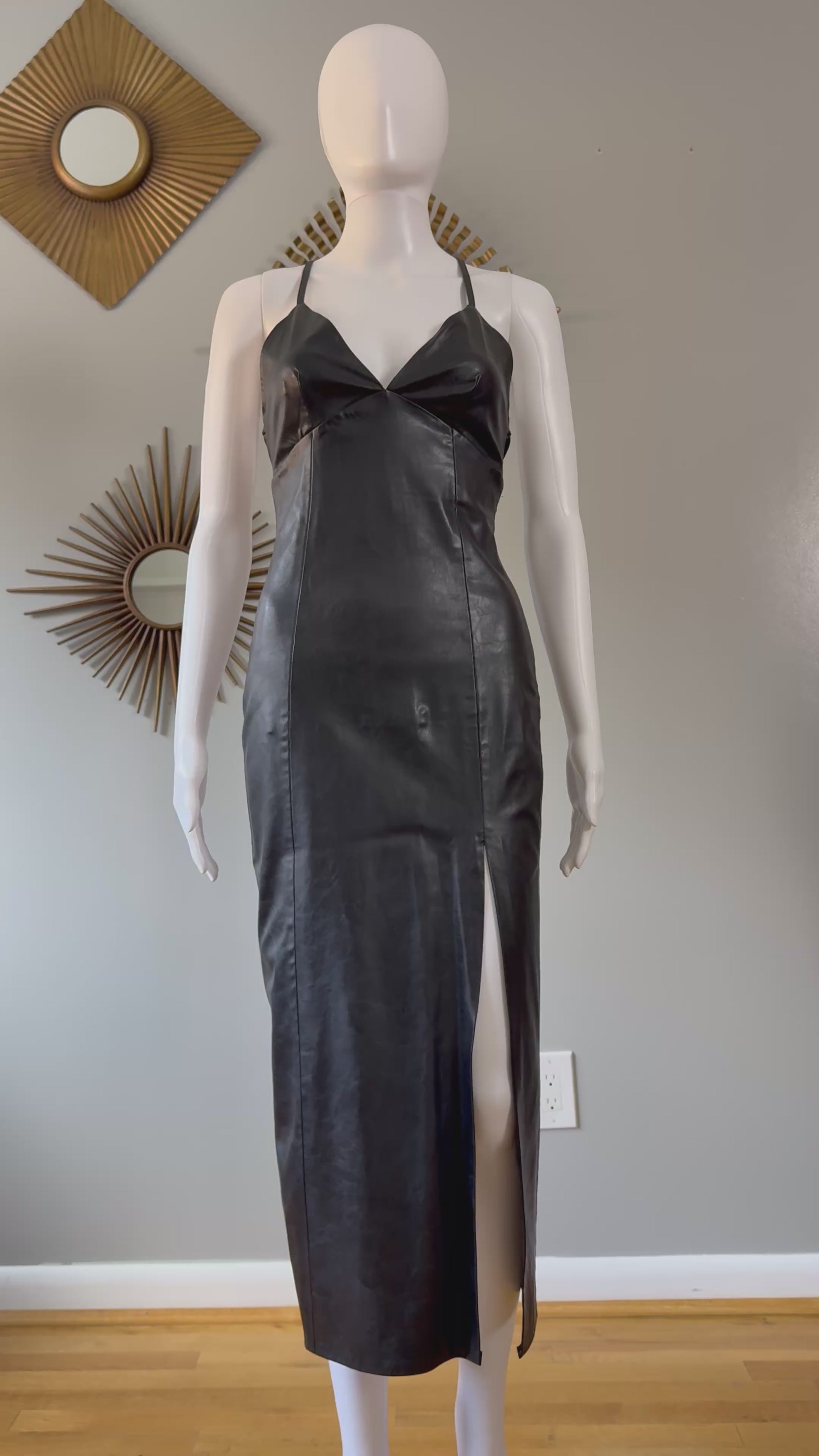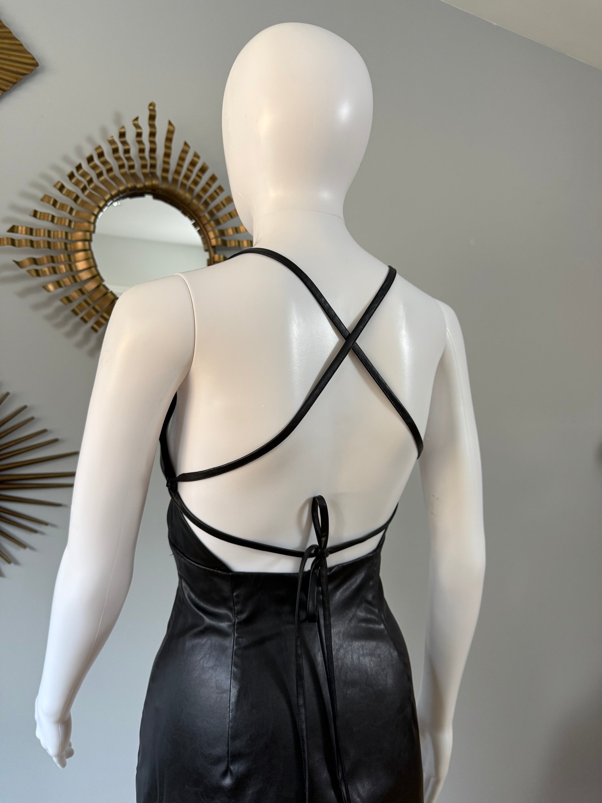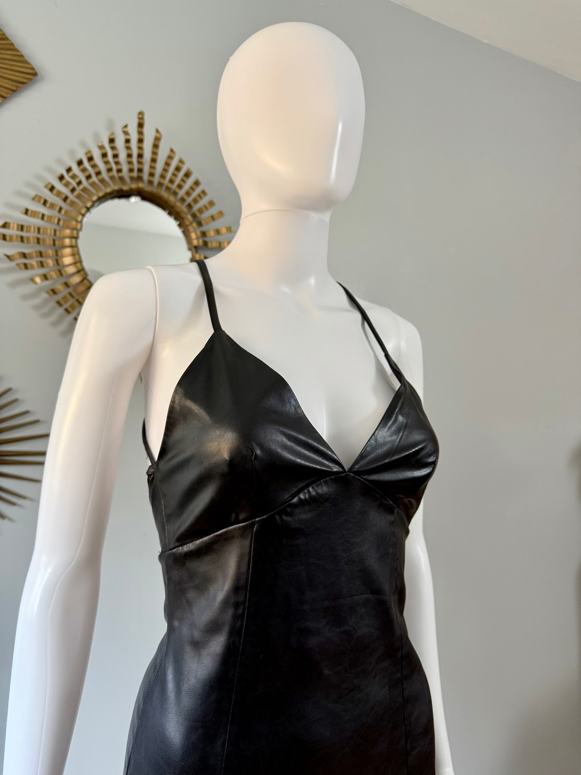 ZARA - Black Faux Leather Midi Dress