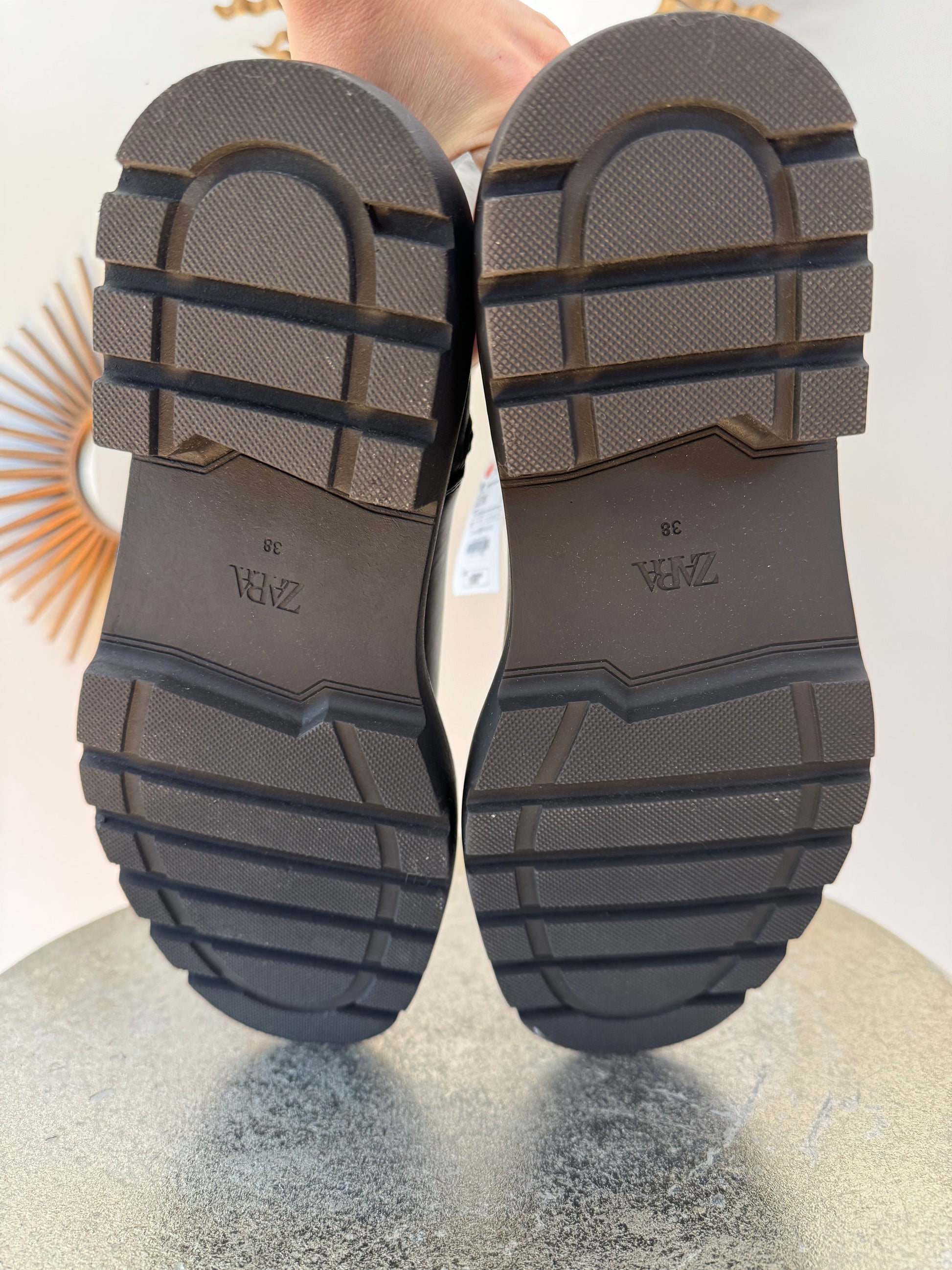 ZARA- Black Over The Knee Lug Sole Boots