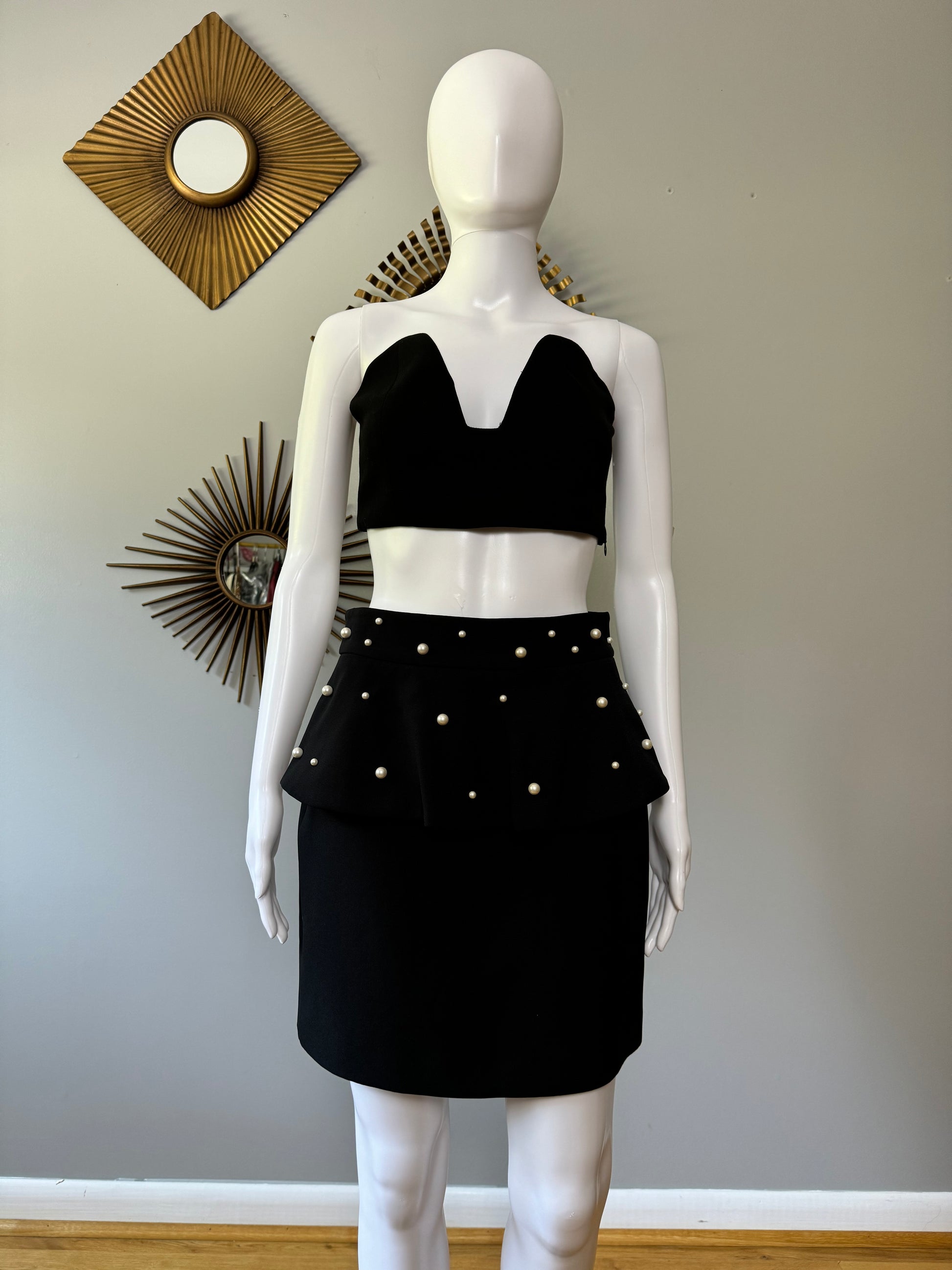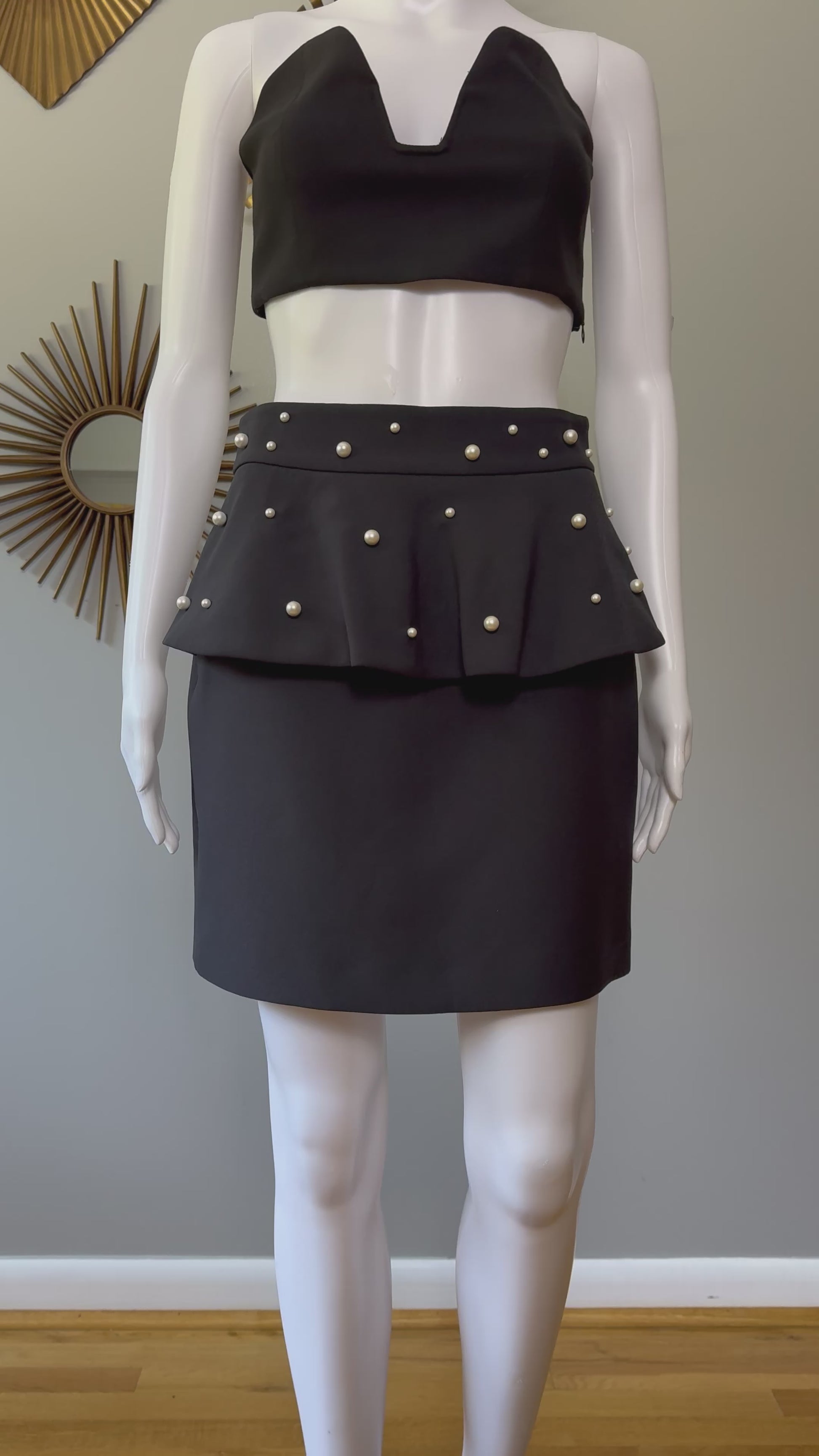 ZARA - Black Peplum Mini Skirt W/ Pearl Embellishments
