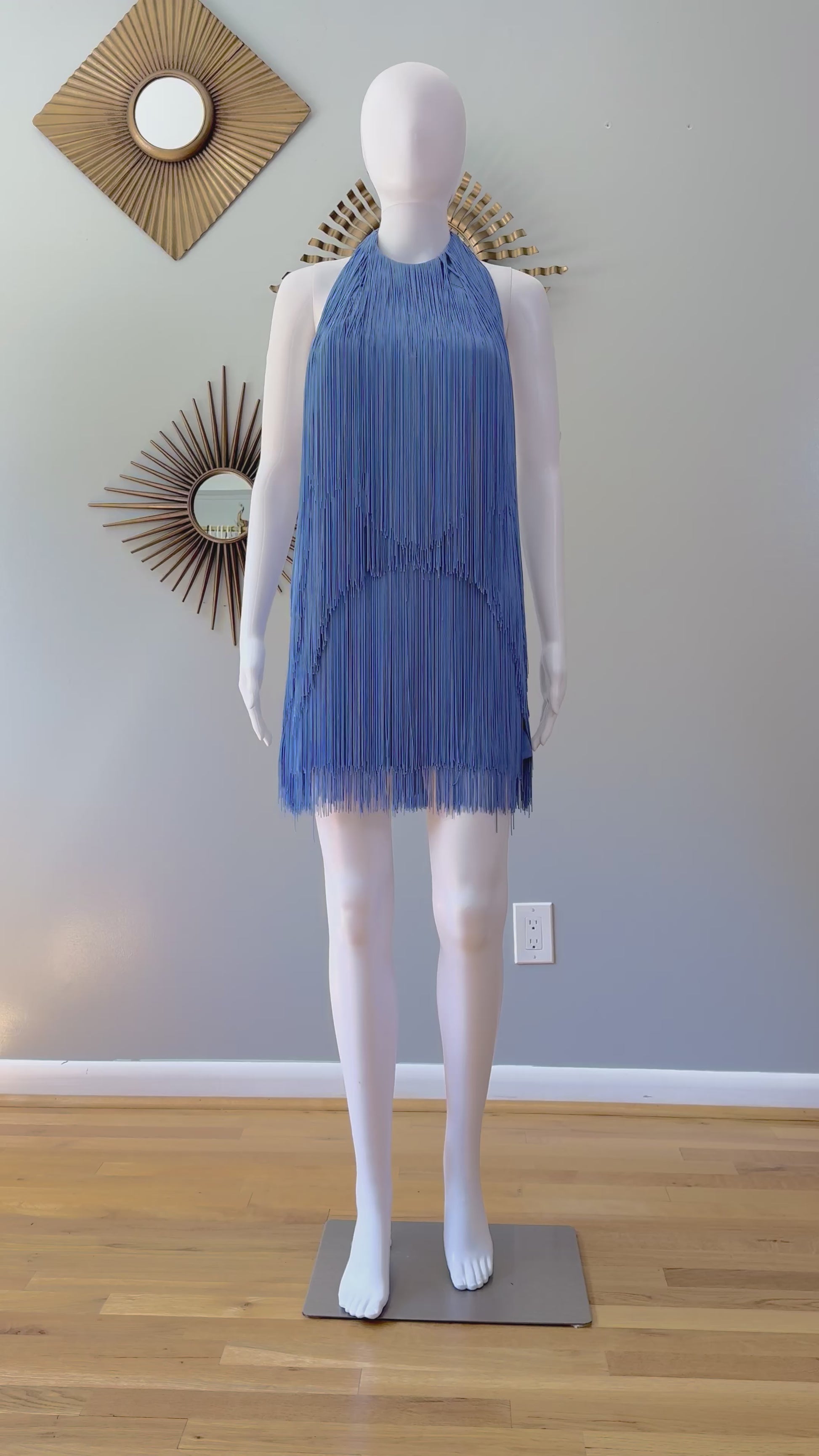 ZARA - Blue Fringed Halter Mini Dress w/ Low Back