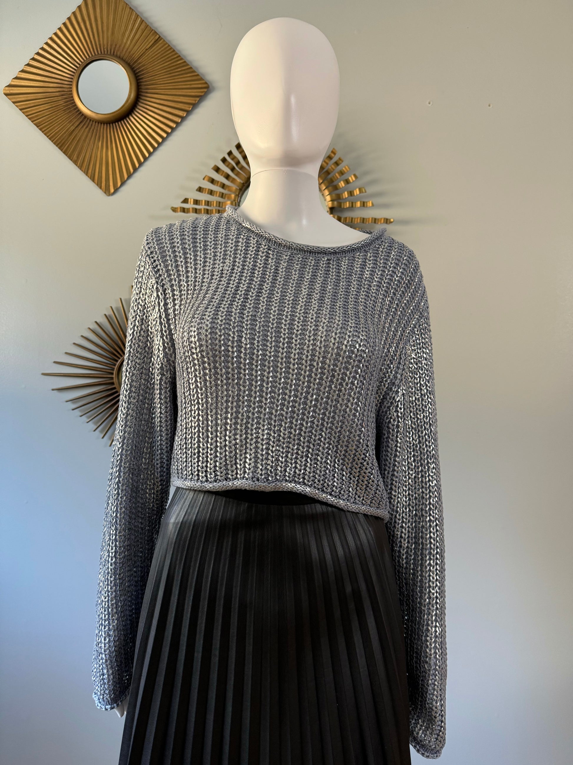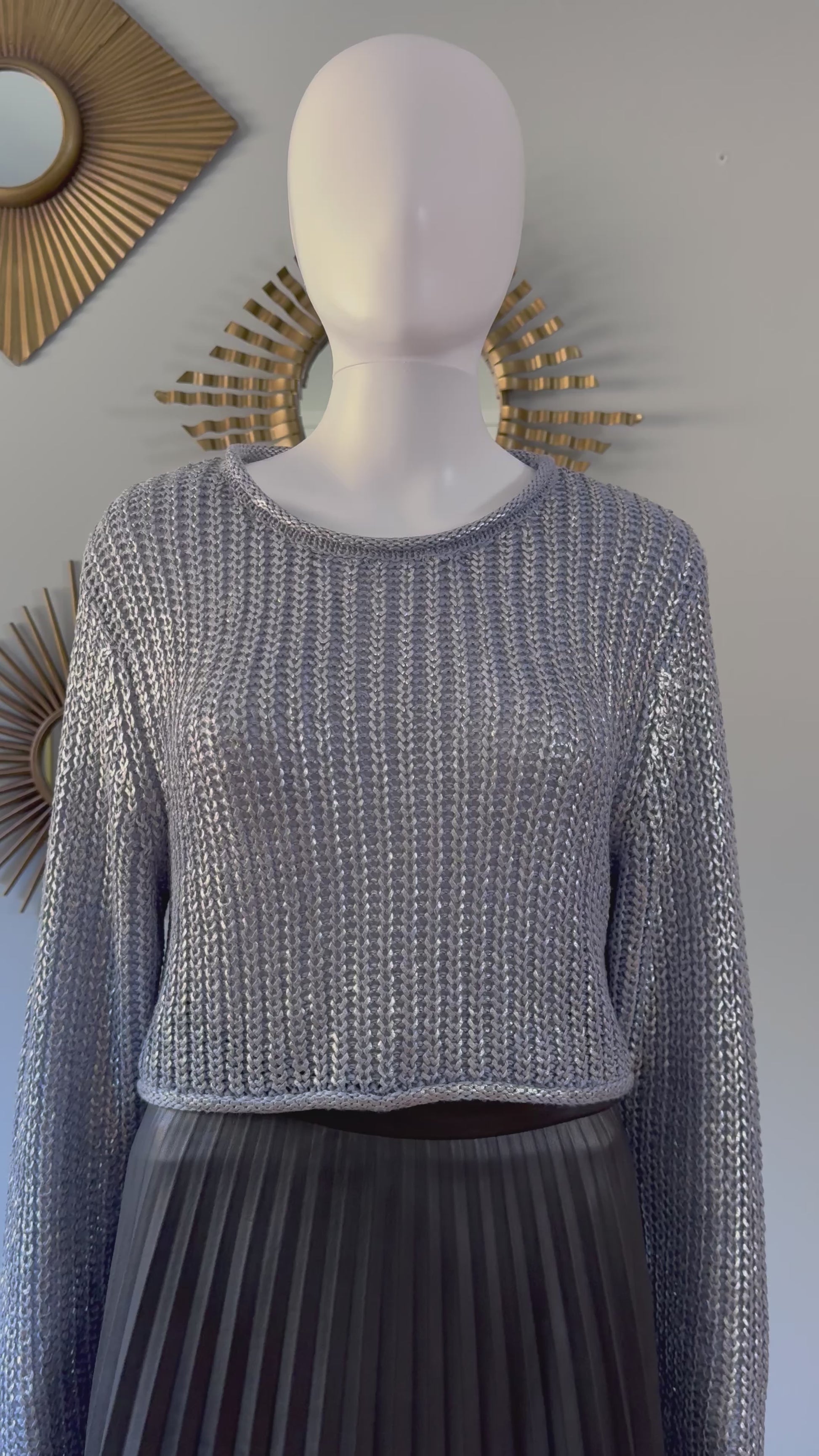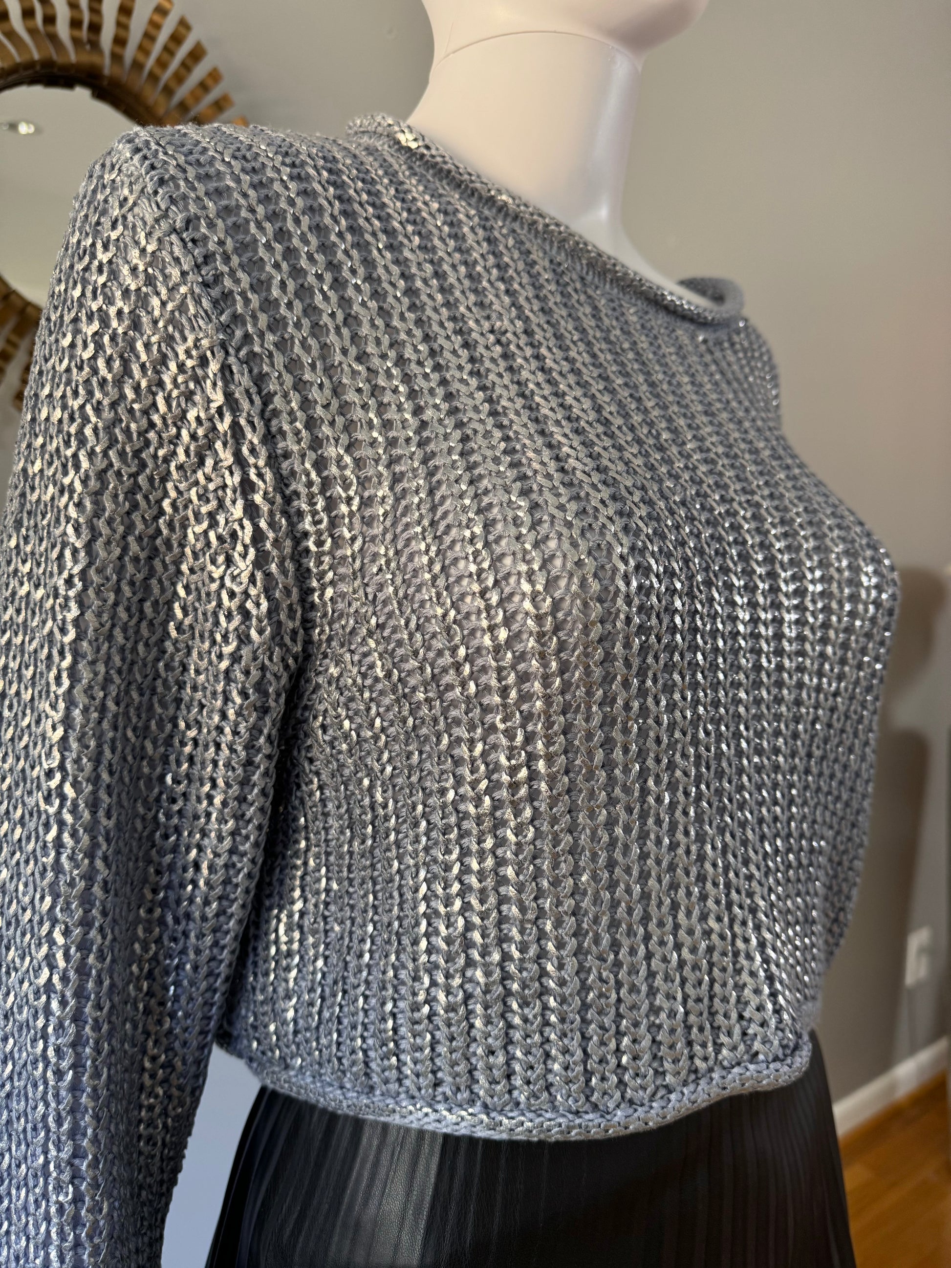 ZARA - Blue Metallic Thread Chunky Knit Cropped Sweater