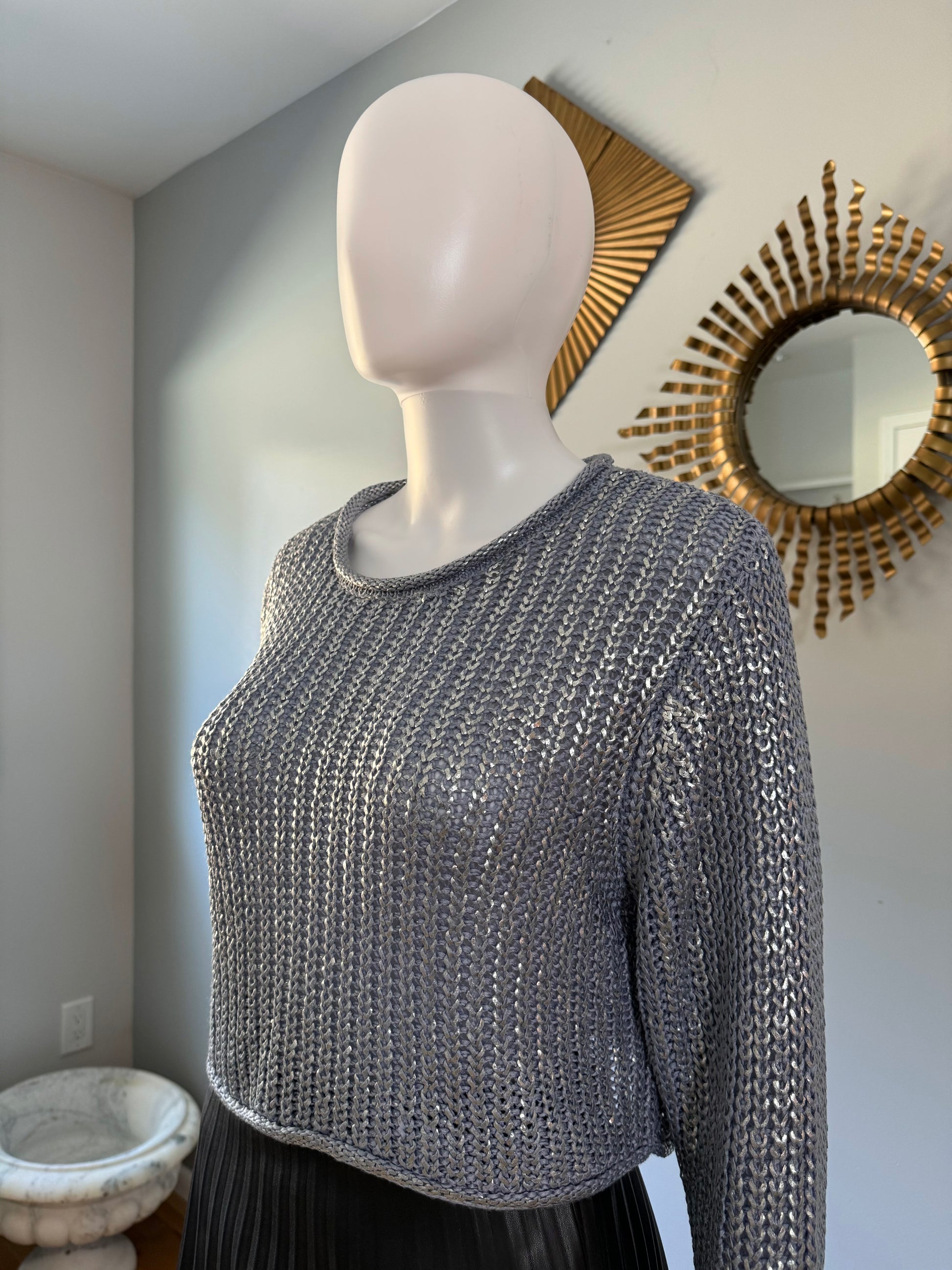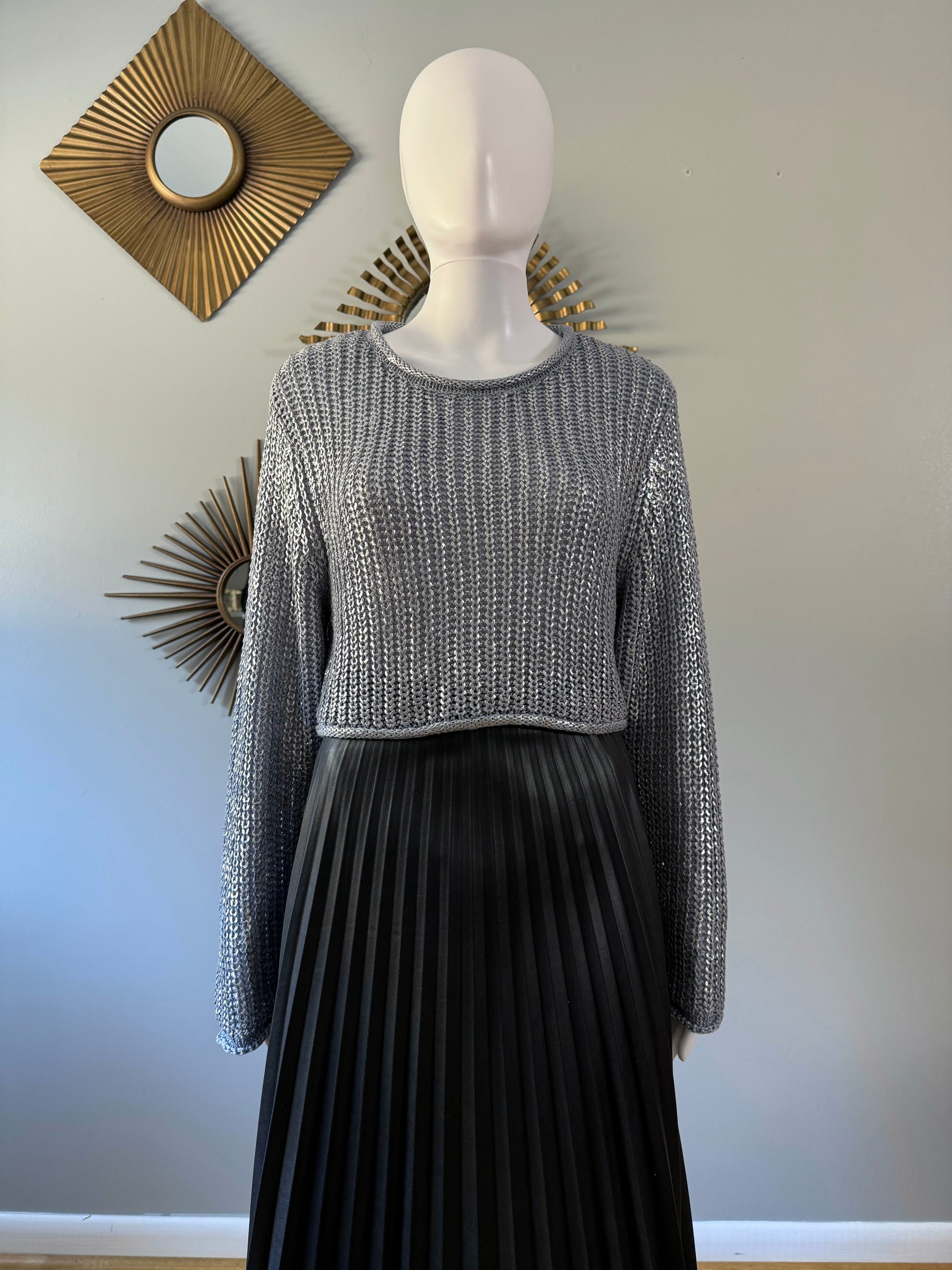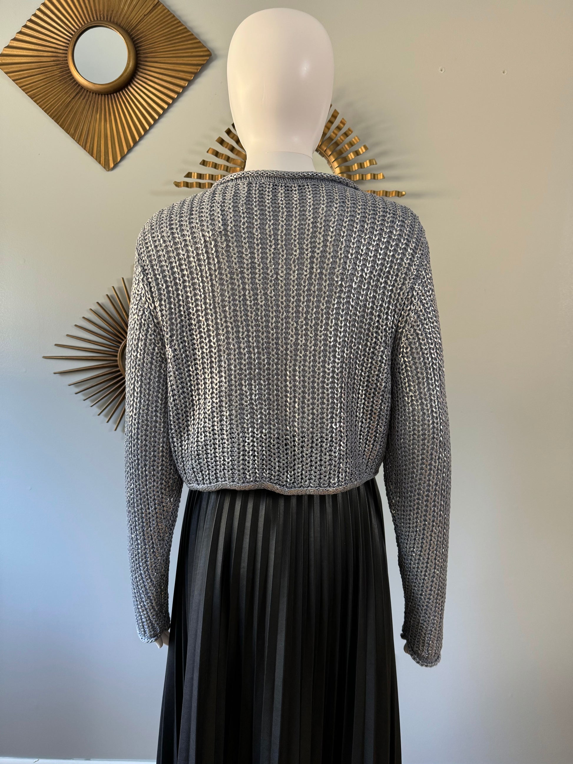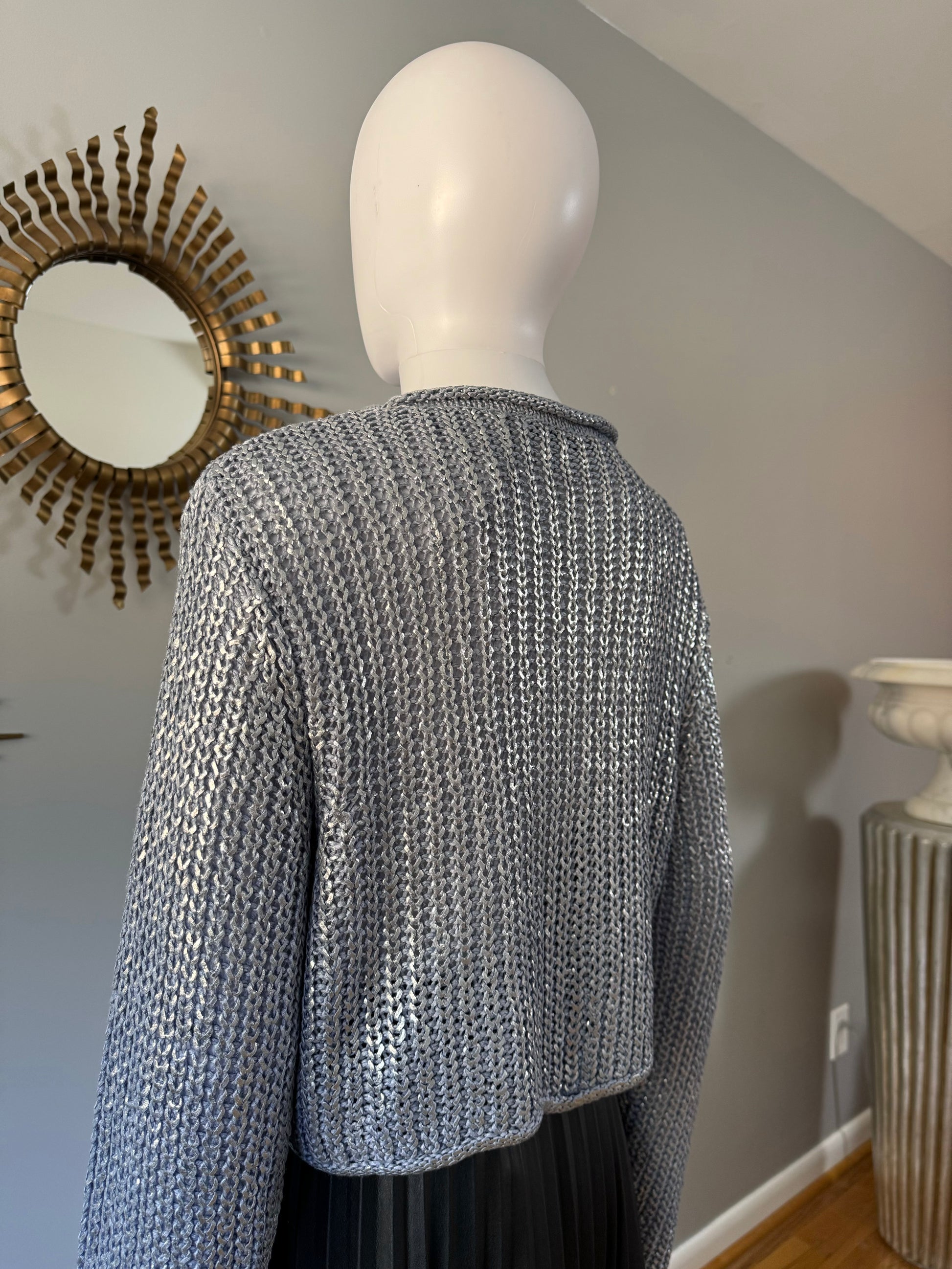 ZARA - Blue Metallic Thread Chunky Knit Cropped Sweater