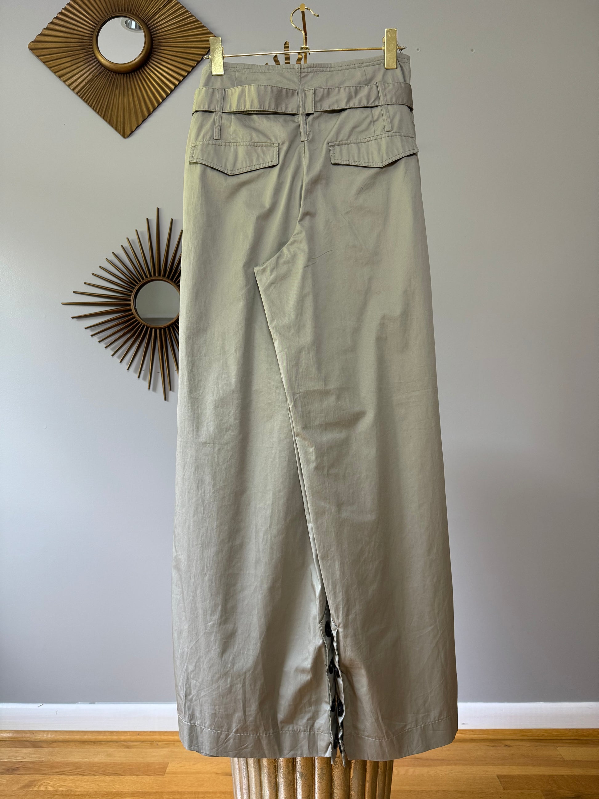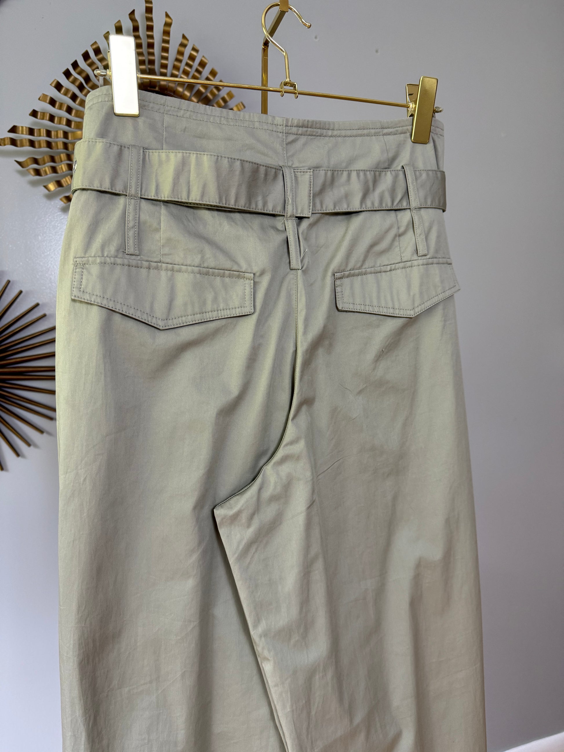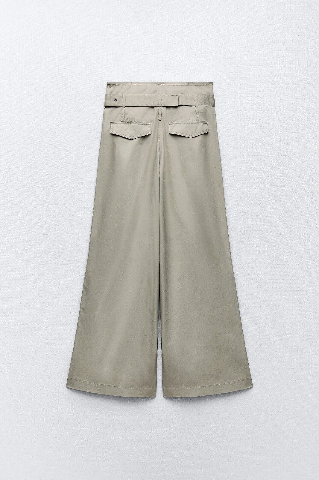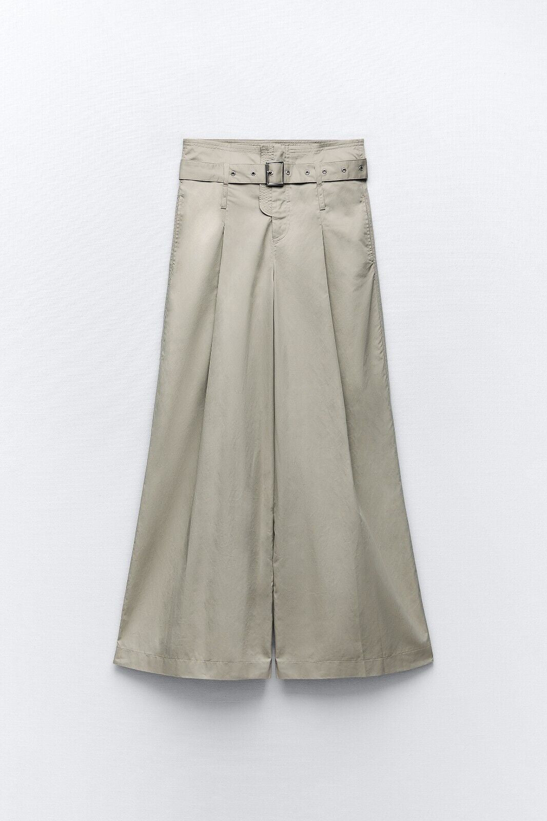 ZARA - Khaki High Waisted Wide Leg Pants With Belt