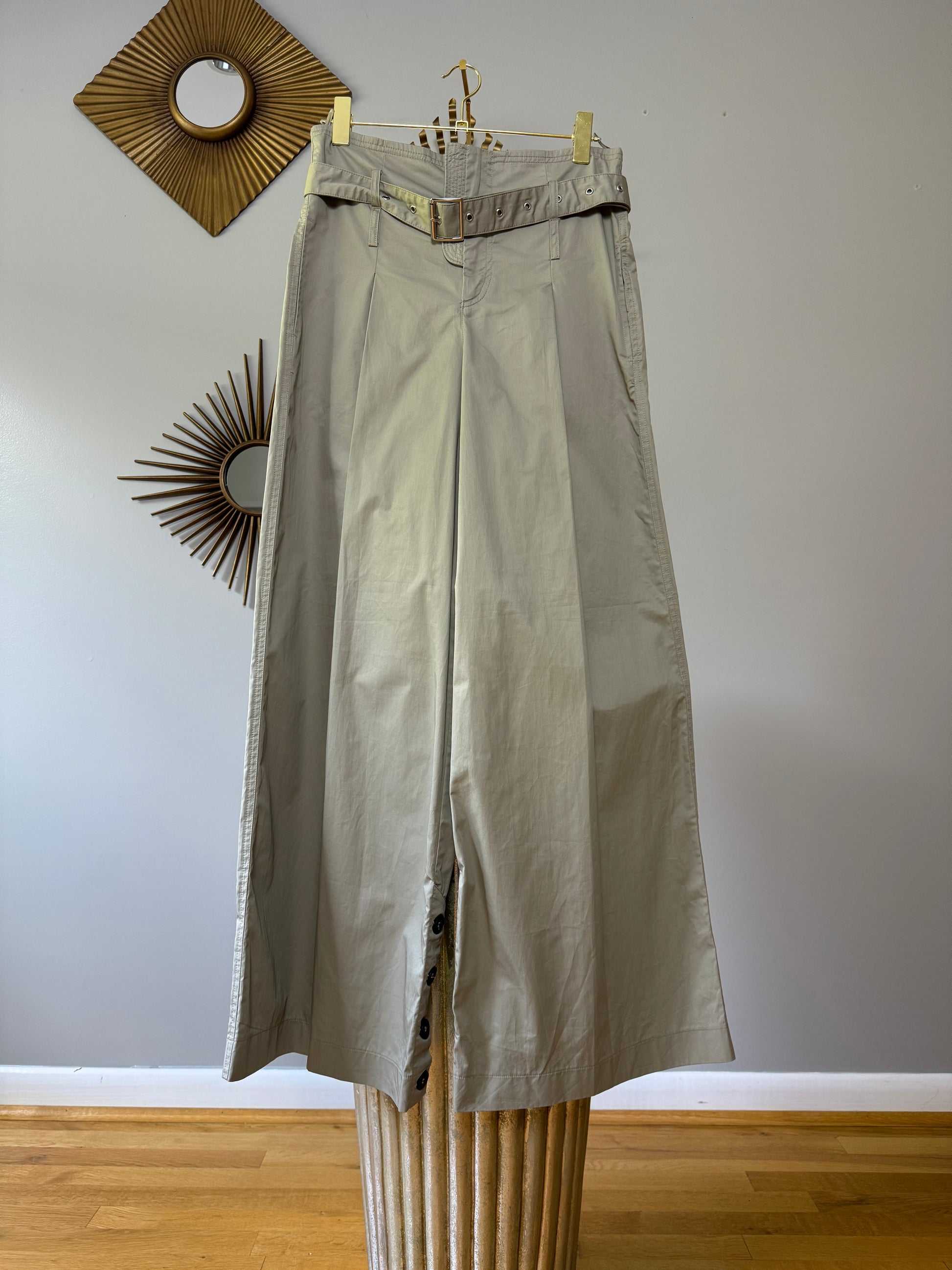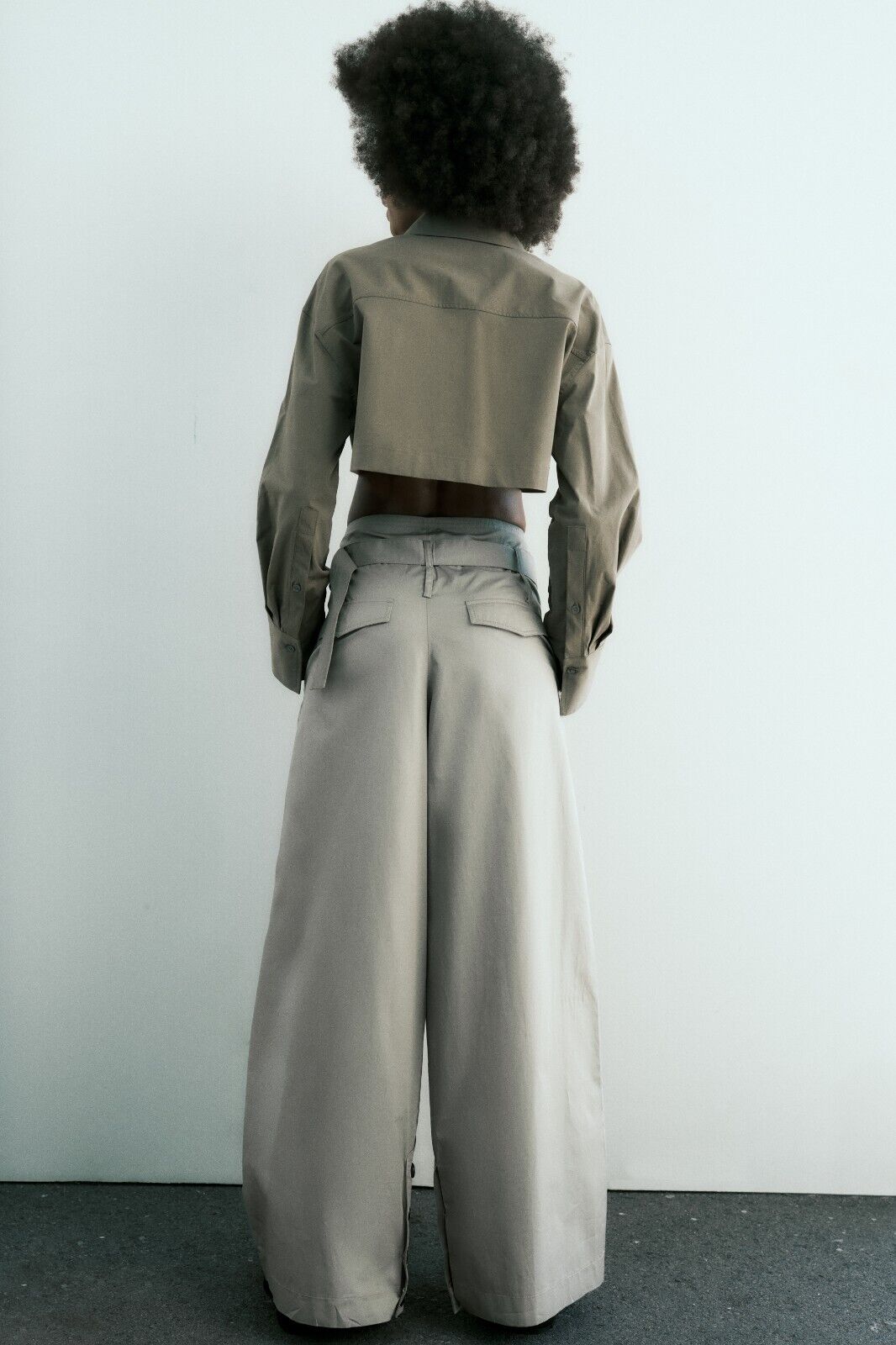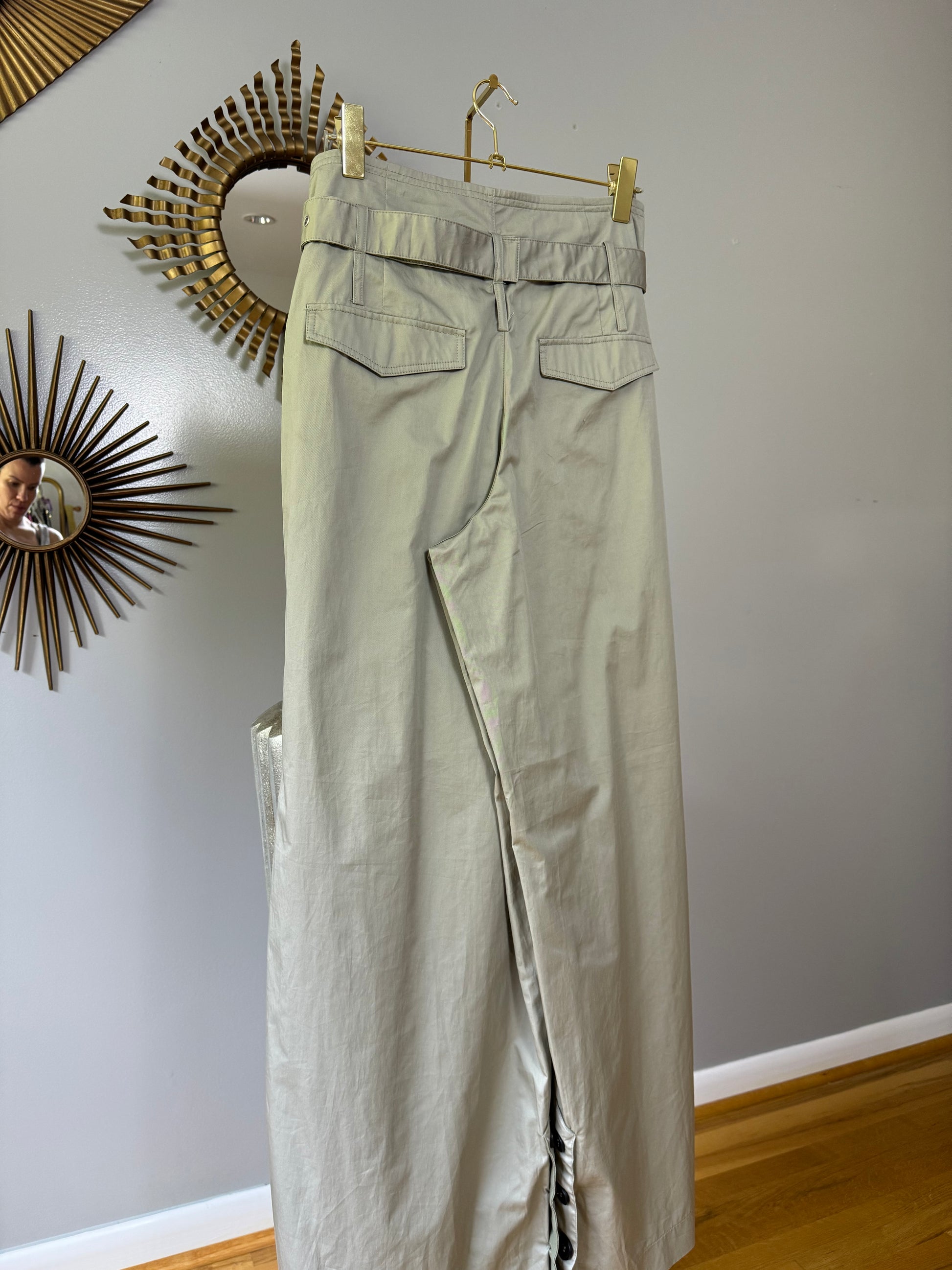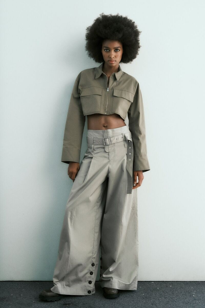 ZARA - Khaki High Waisted Wide Leg Pants With Belt
