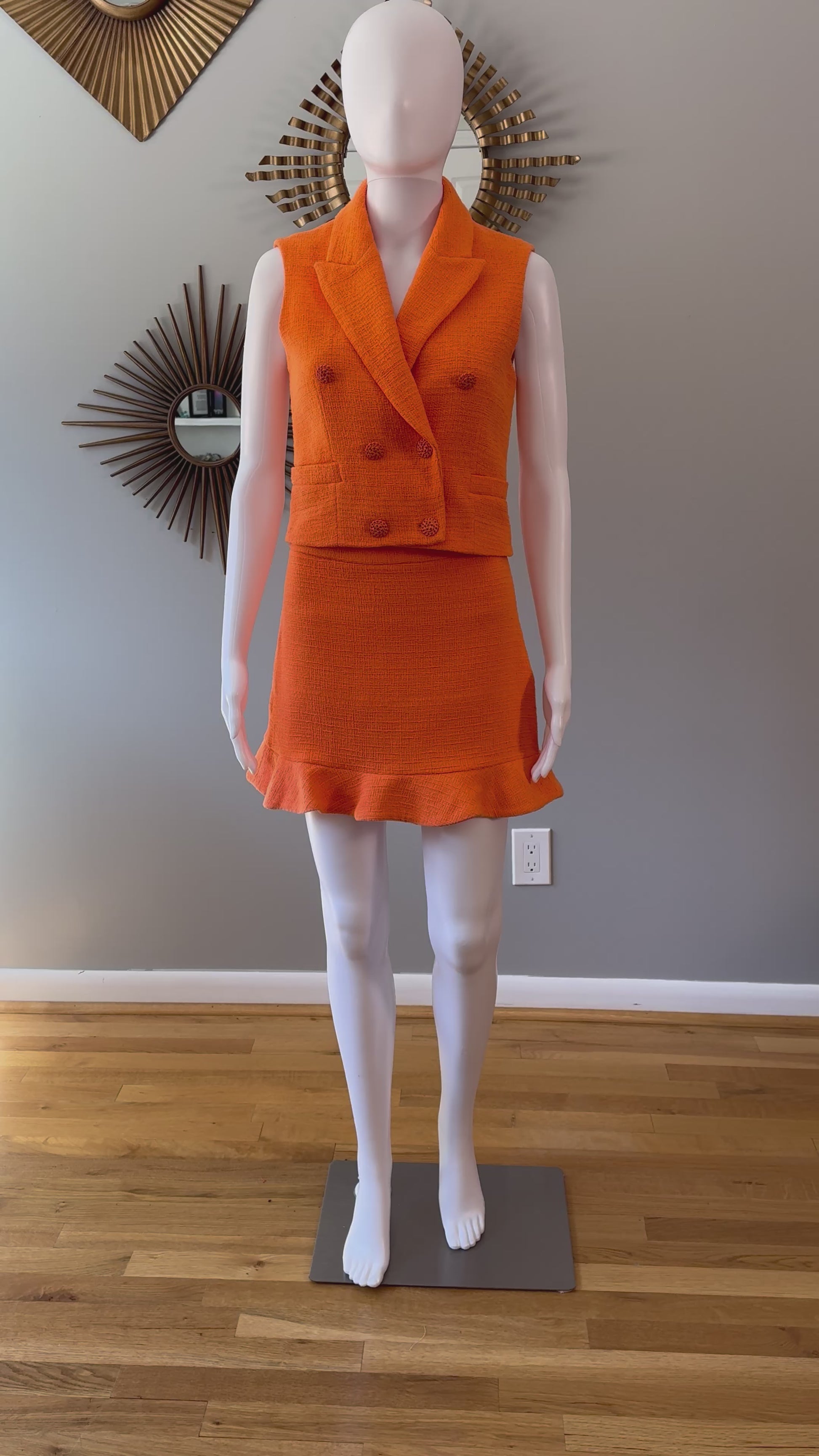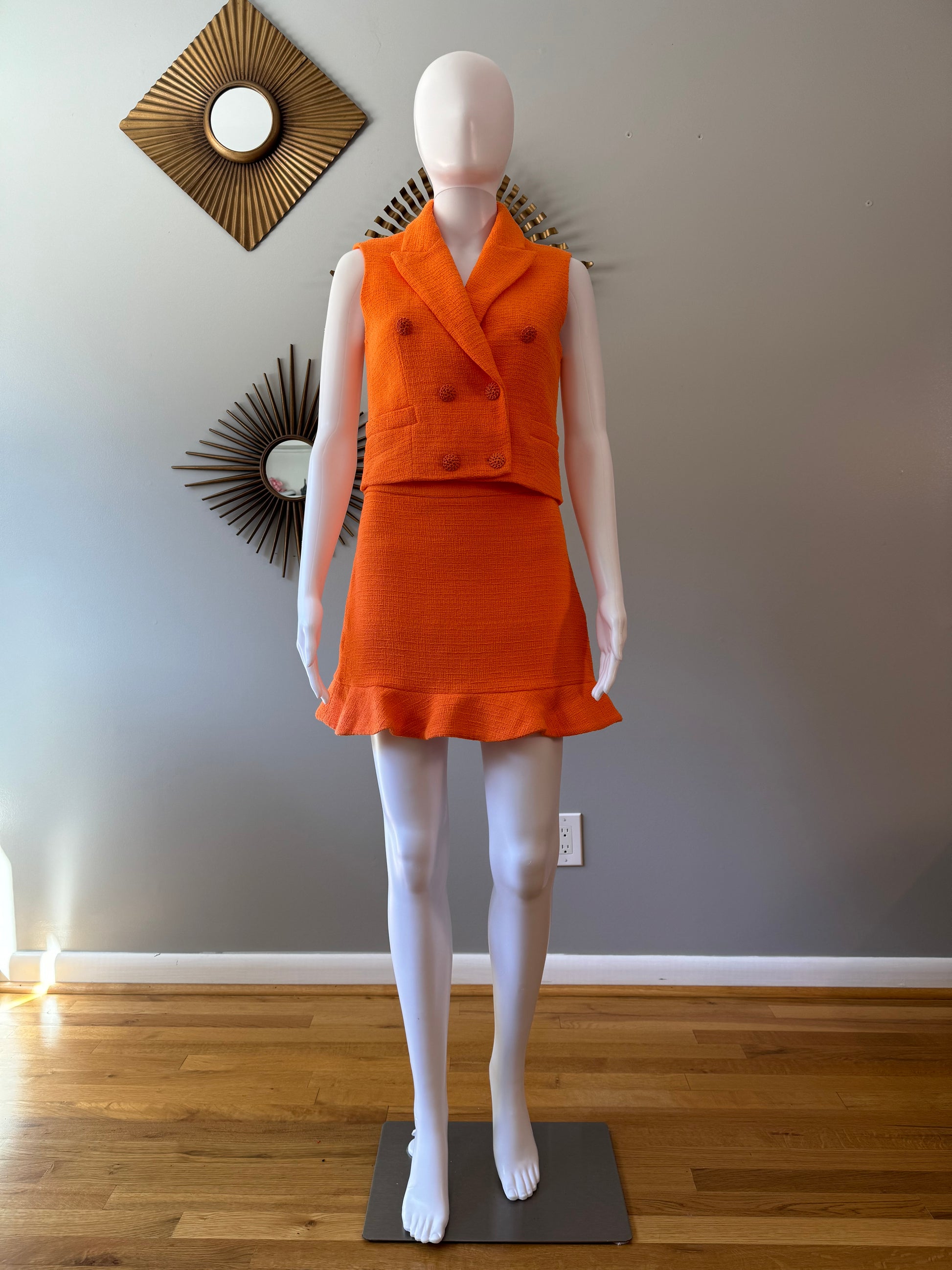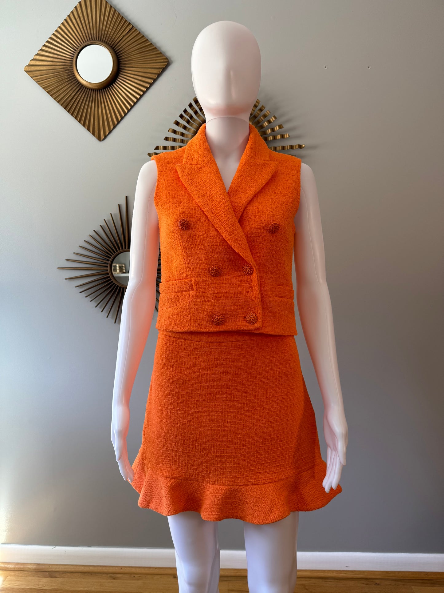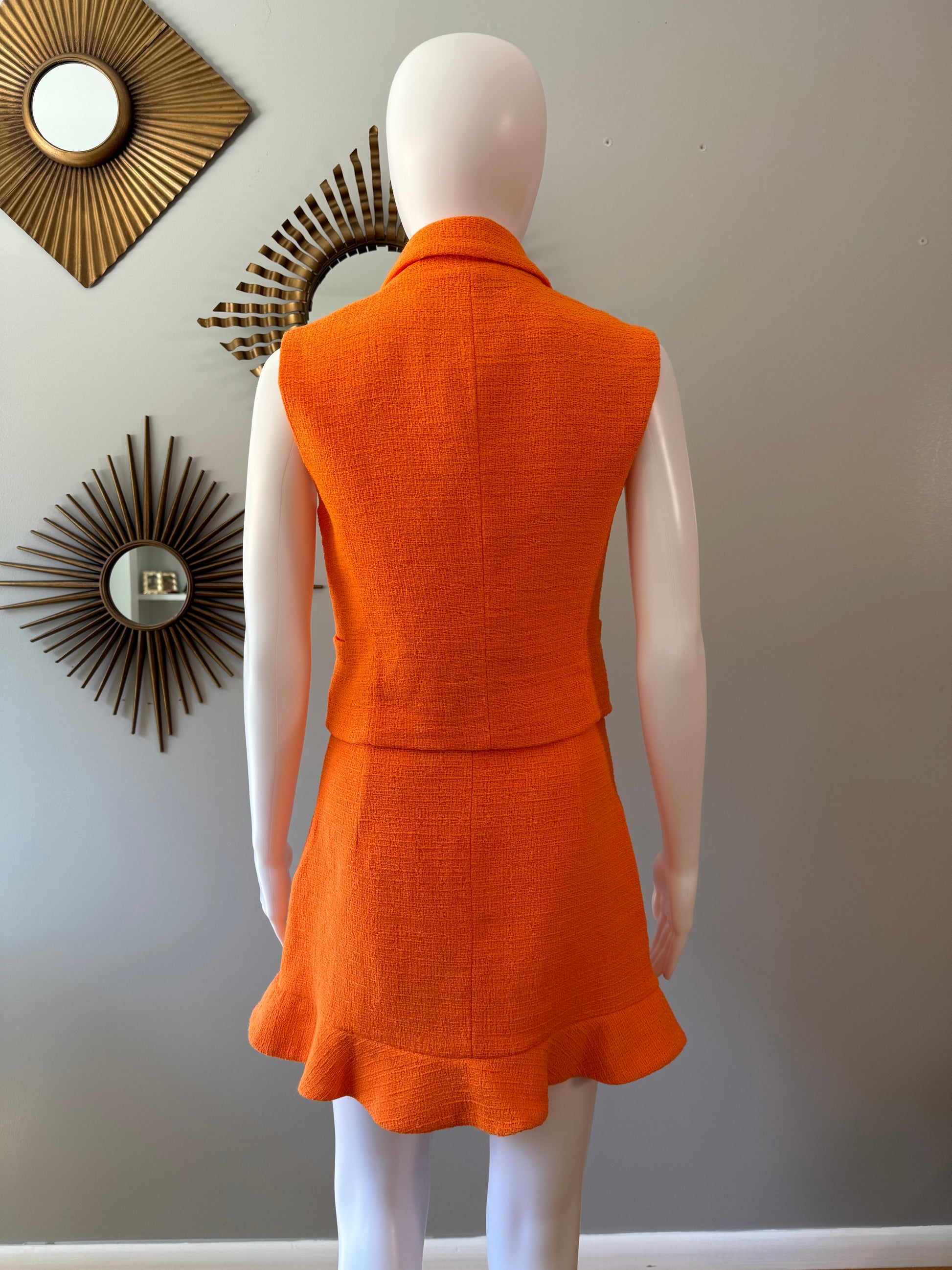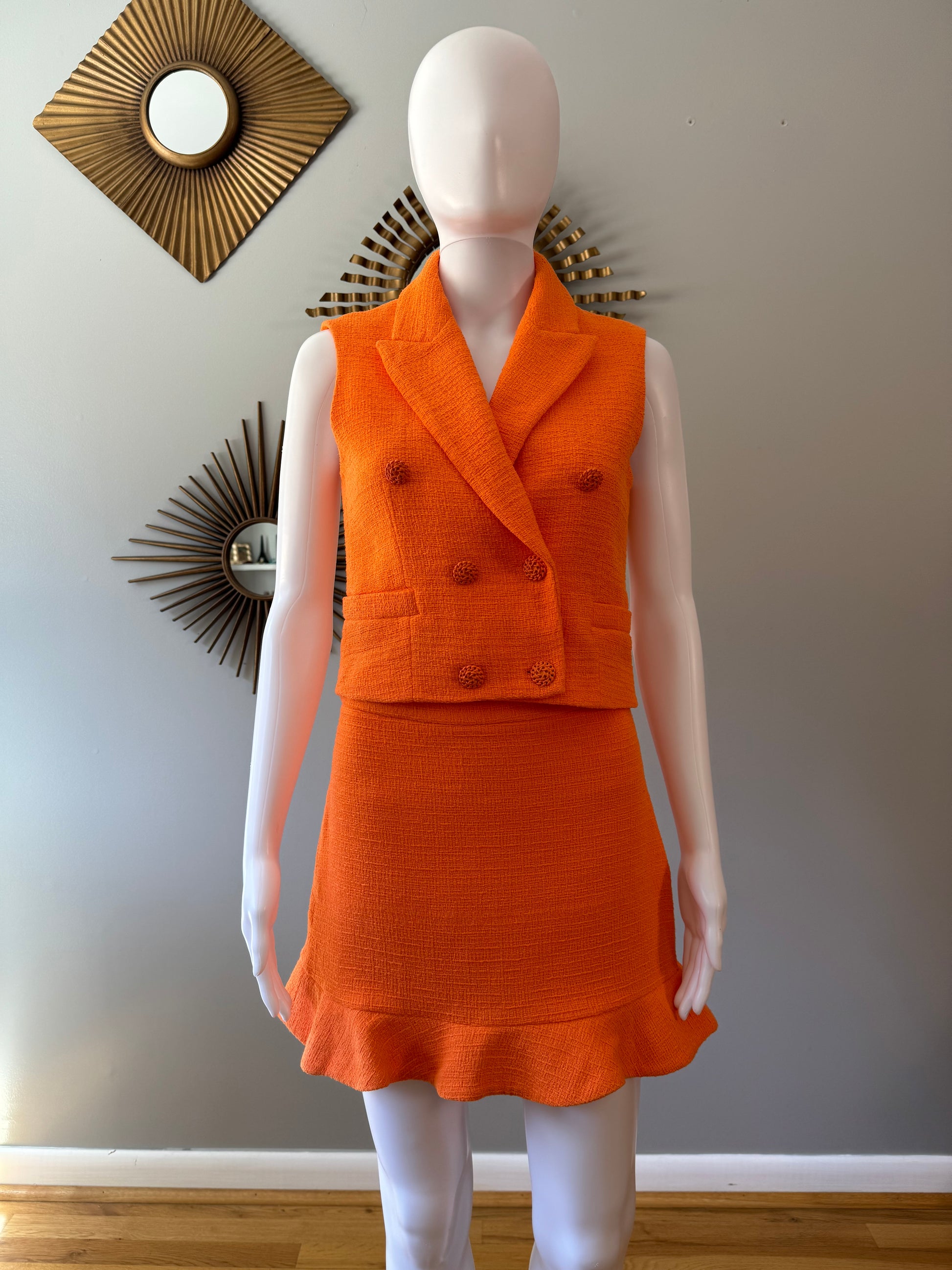 Zara - Conjunto Chaleco y Falda Naranja Textura
