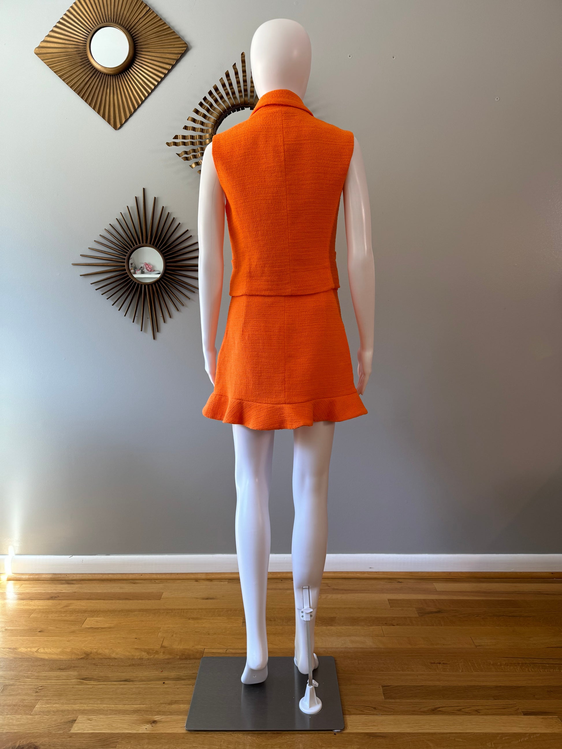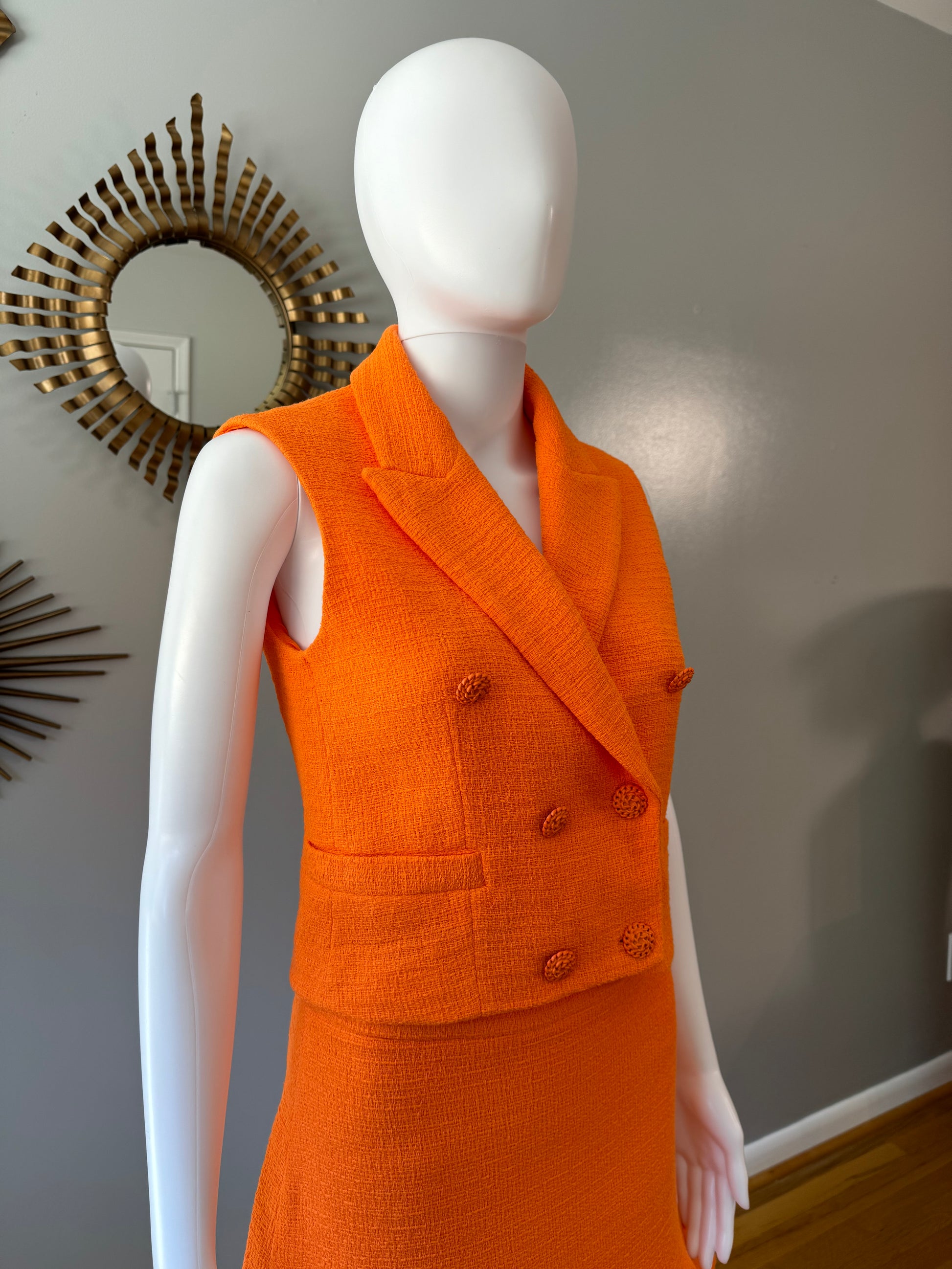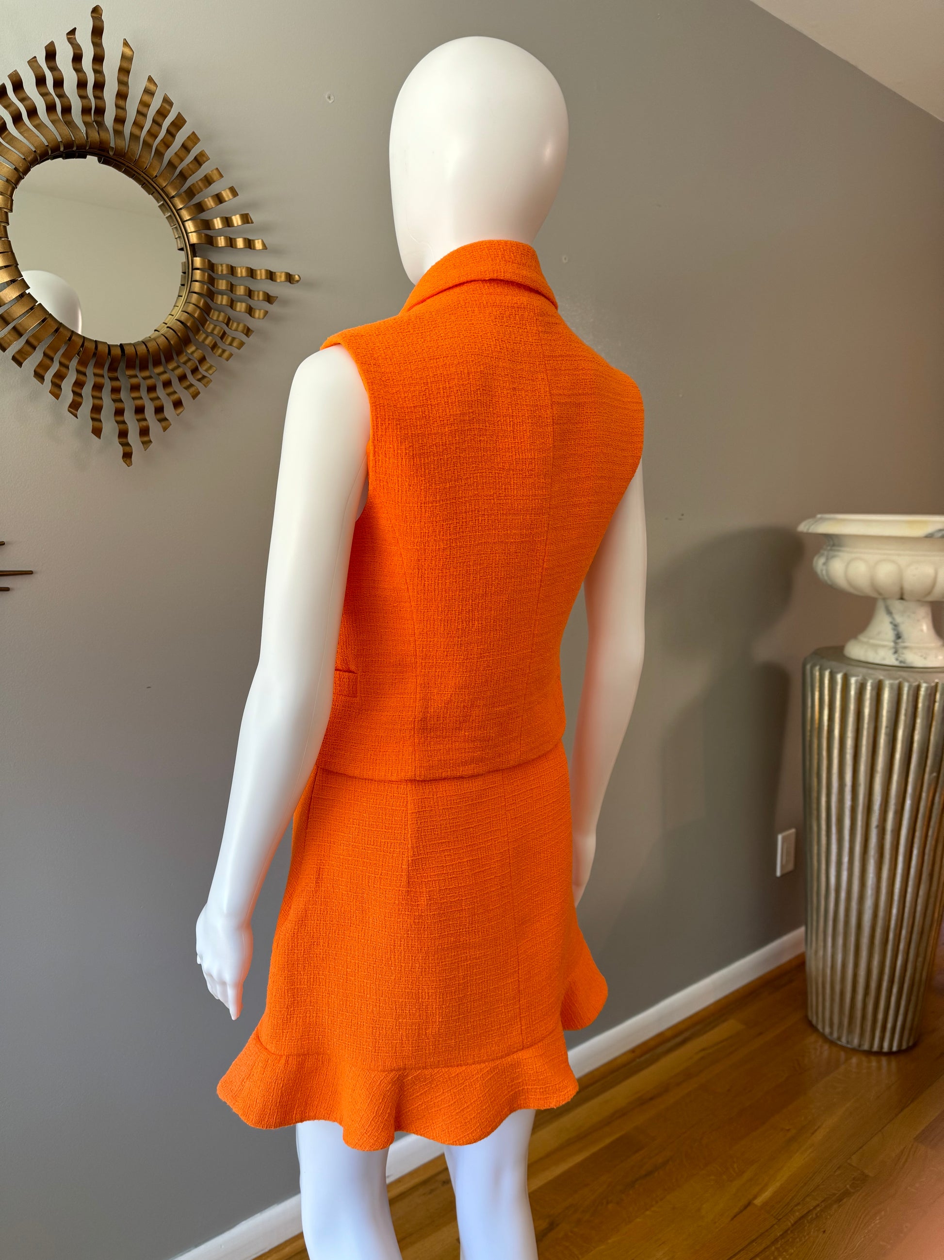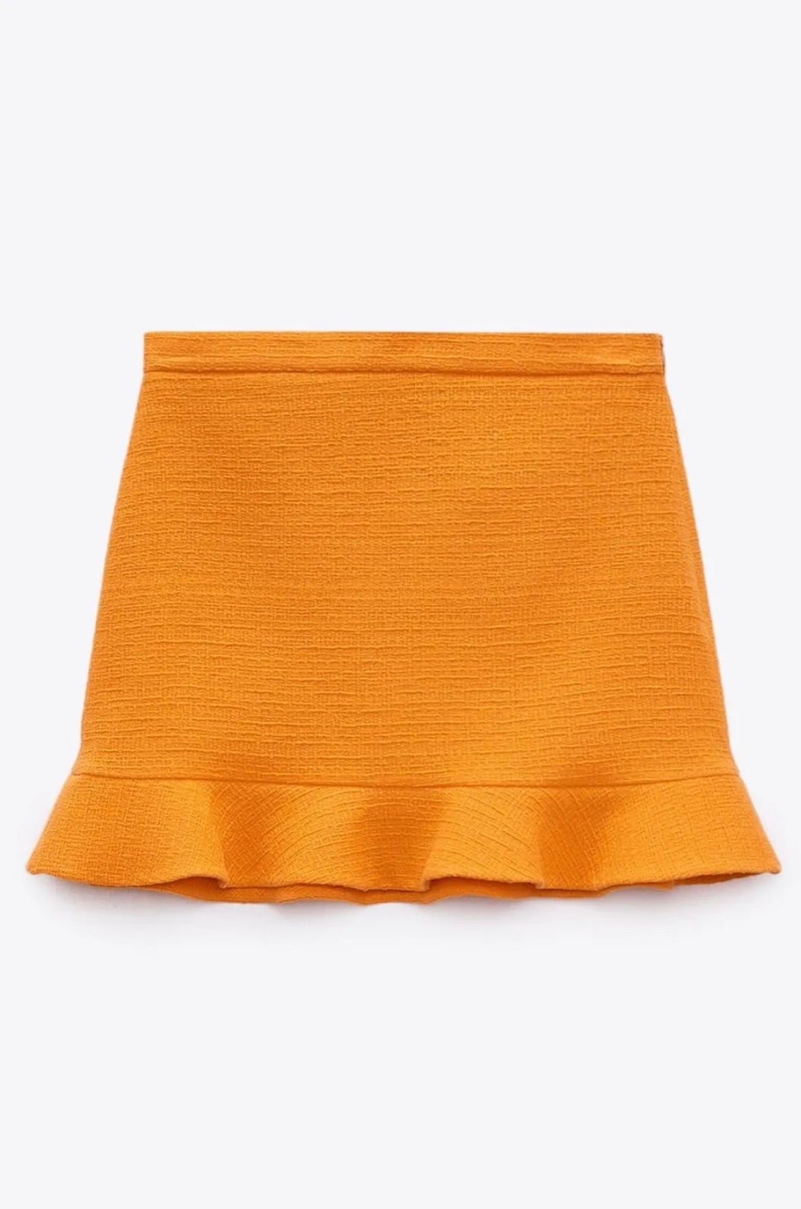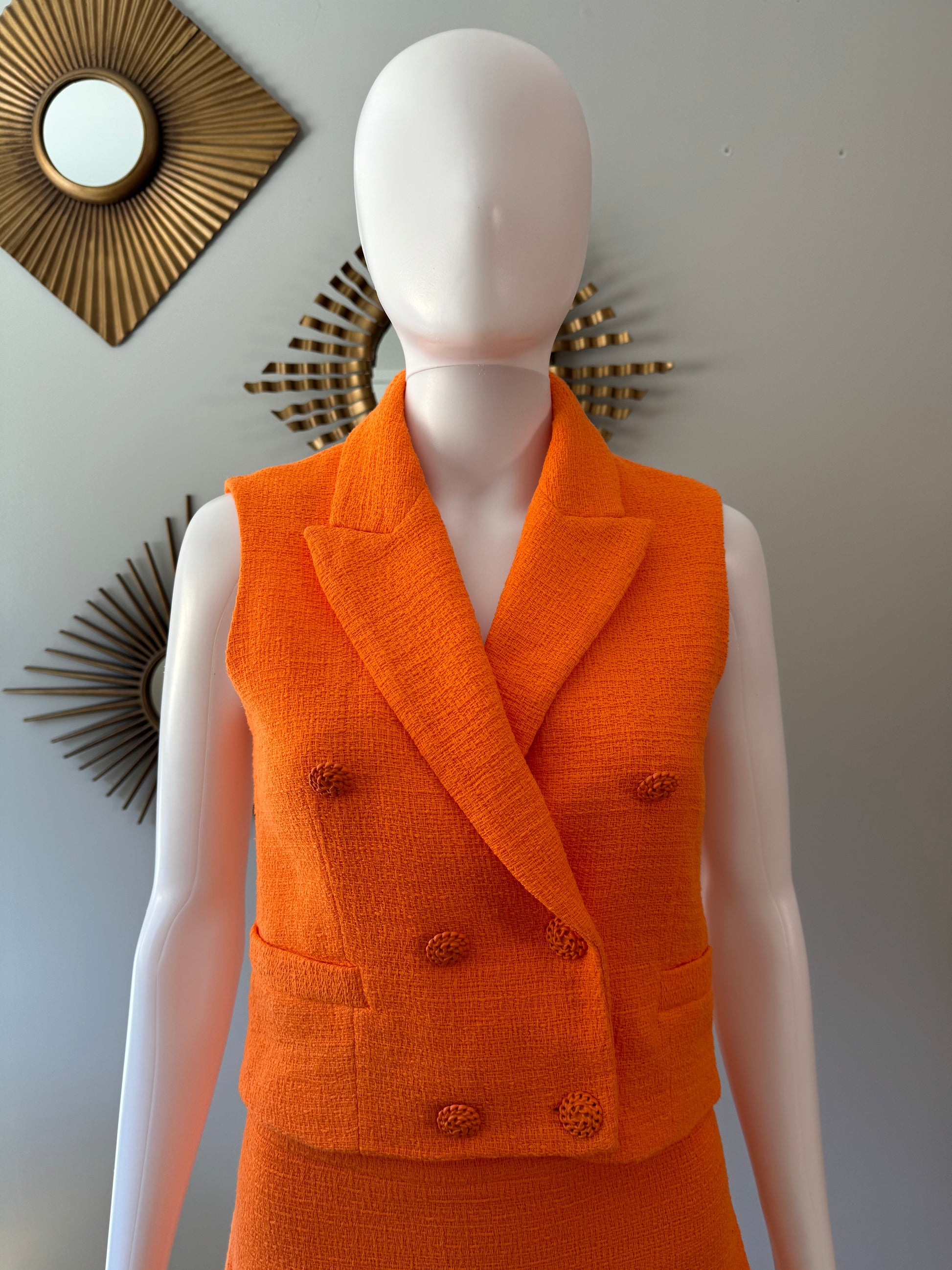 Zara - Conjunto Chaleco y Falda Naranja Textura