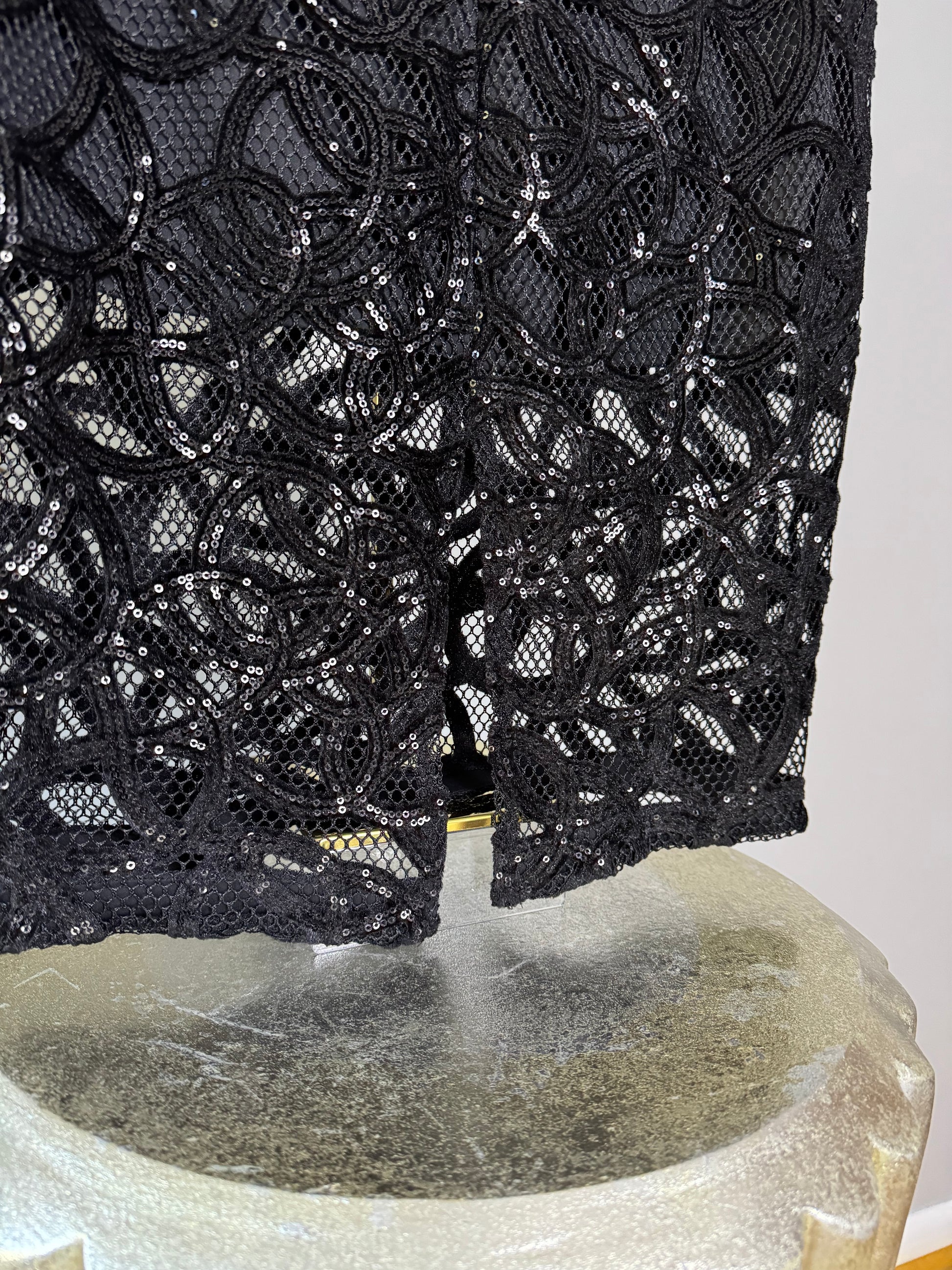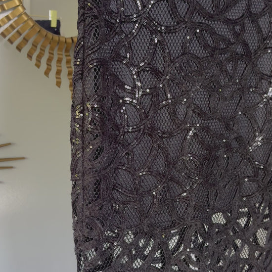 Express - Black Sequin Swirl Midi Skirt