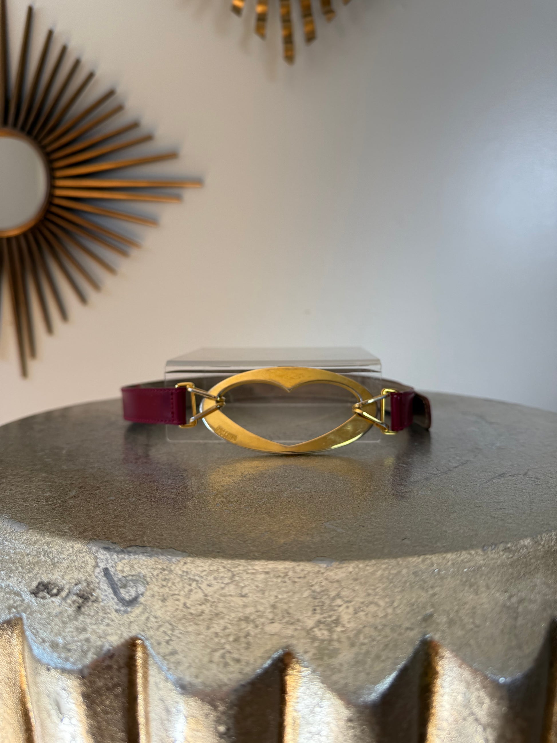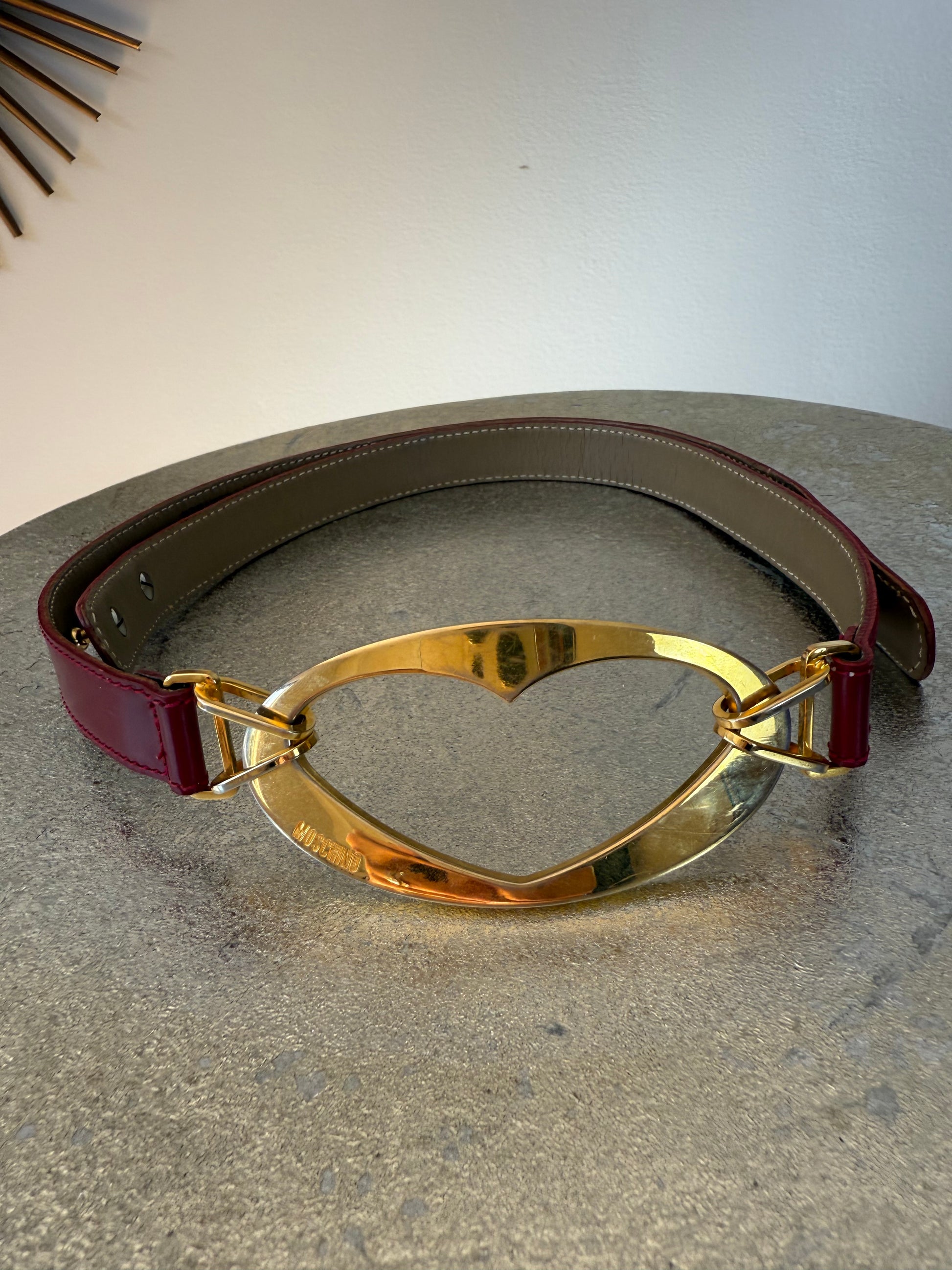 Heart buckle leather belt by Moschino.