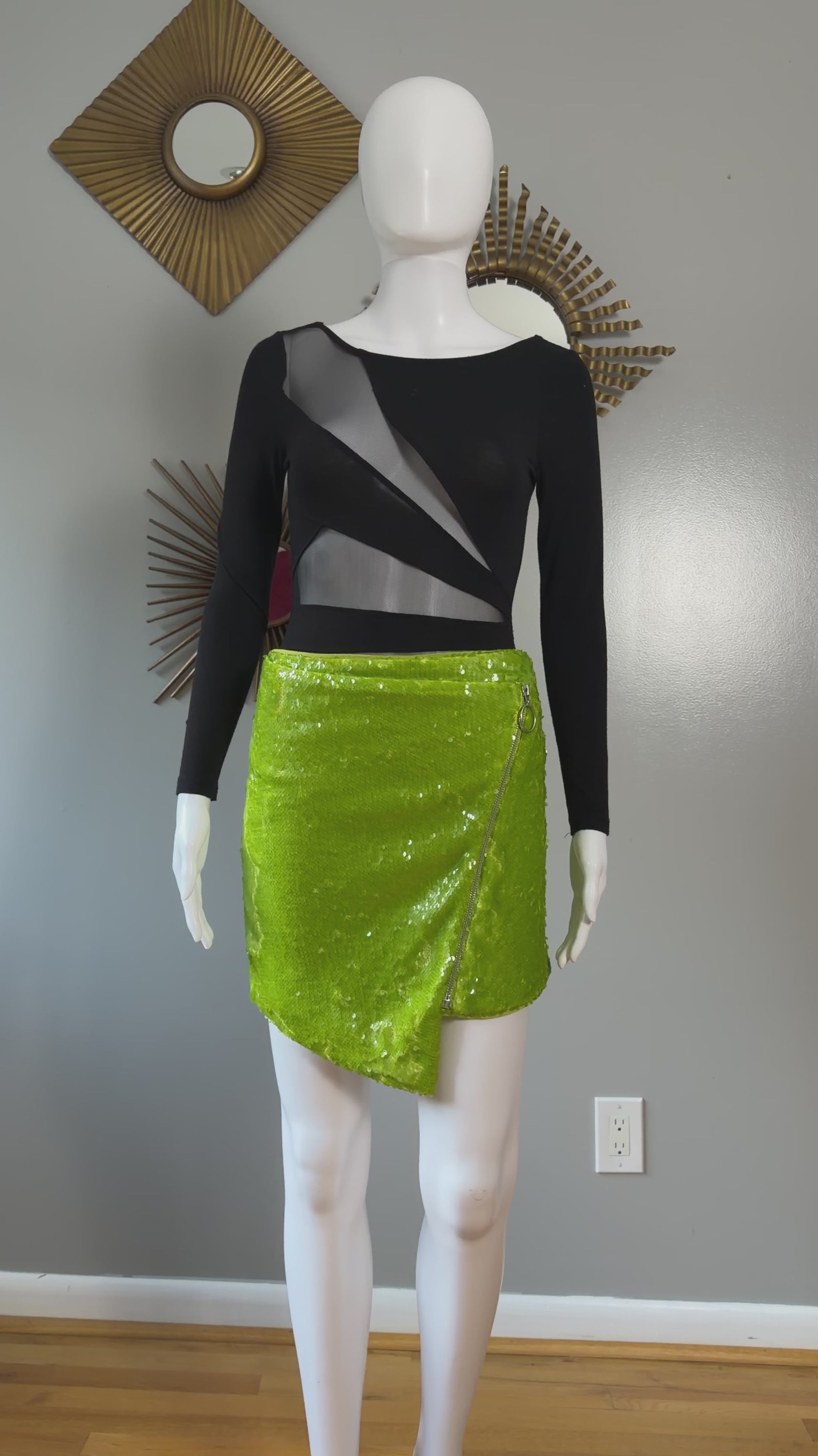 NBD - Green Apple Martini Sequin Mini Skirt