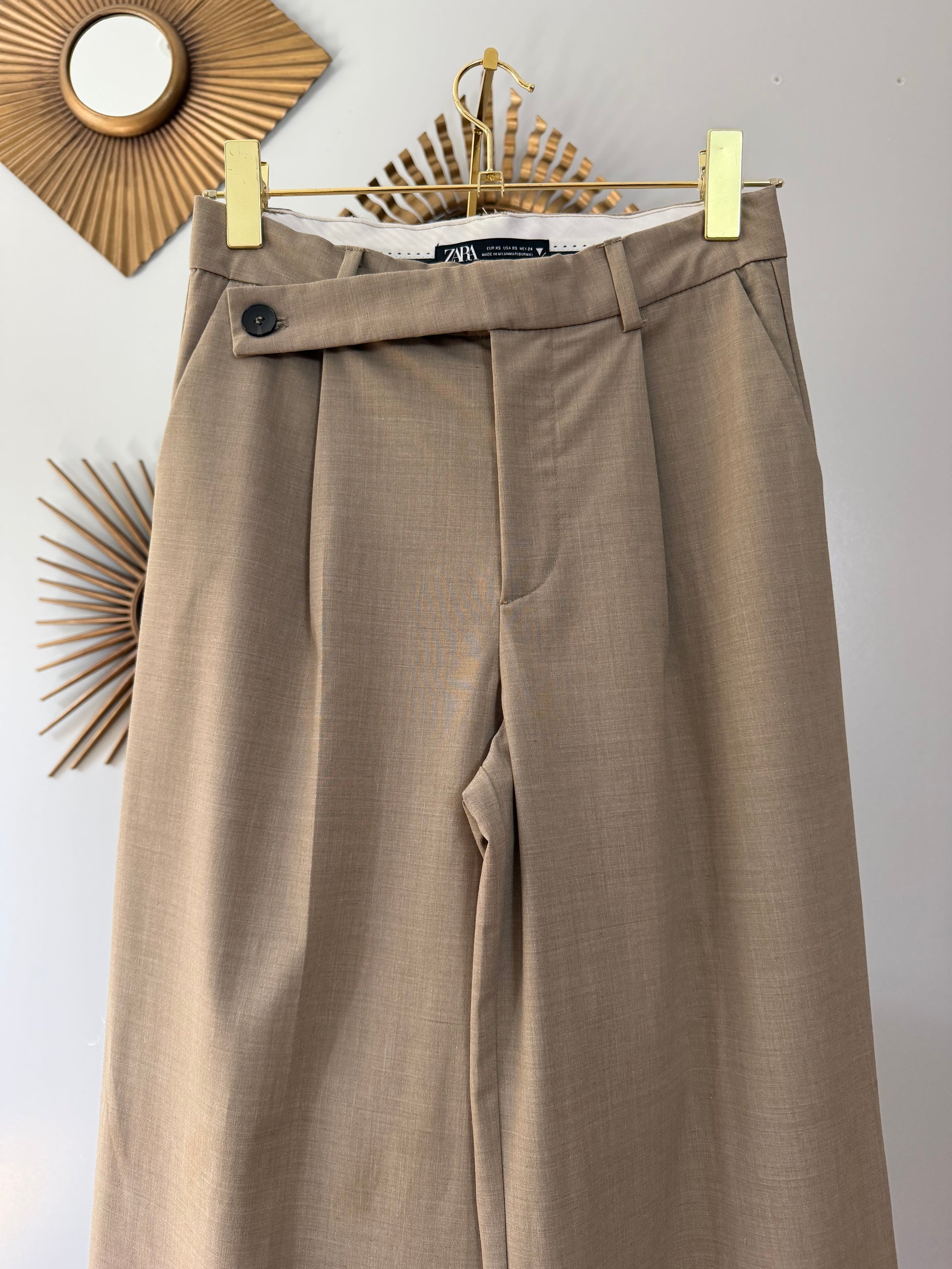 Zara - Tan High Asymmetrical Waist Trousers